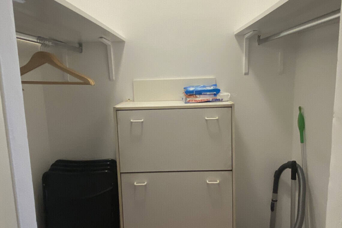 Additional features include high-speed Internet, original and functional wooden shutters, and excellent natural light. There is also a small wall safe for valuables. The bedroom overlooks a quiet private street (closed to traffic, reserved for residents), and has a French door window (no balcony).