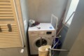 The bathroom is equipped with a bathtub with shower, washing machine, and a window providing natural light and proper ventilation.