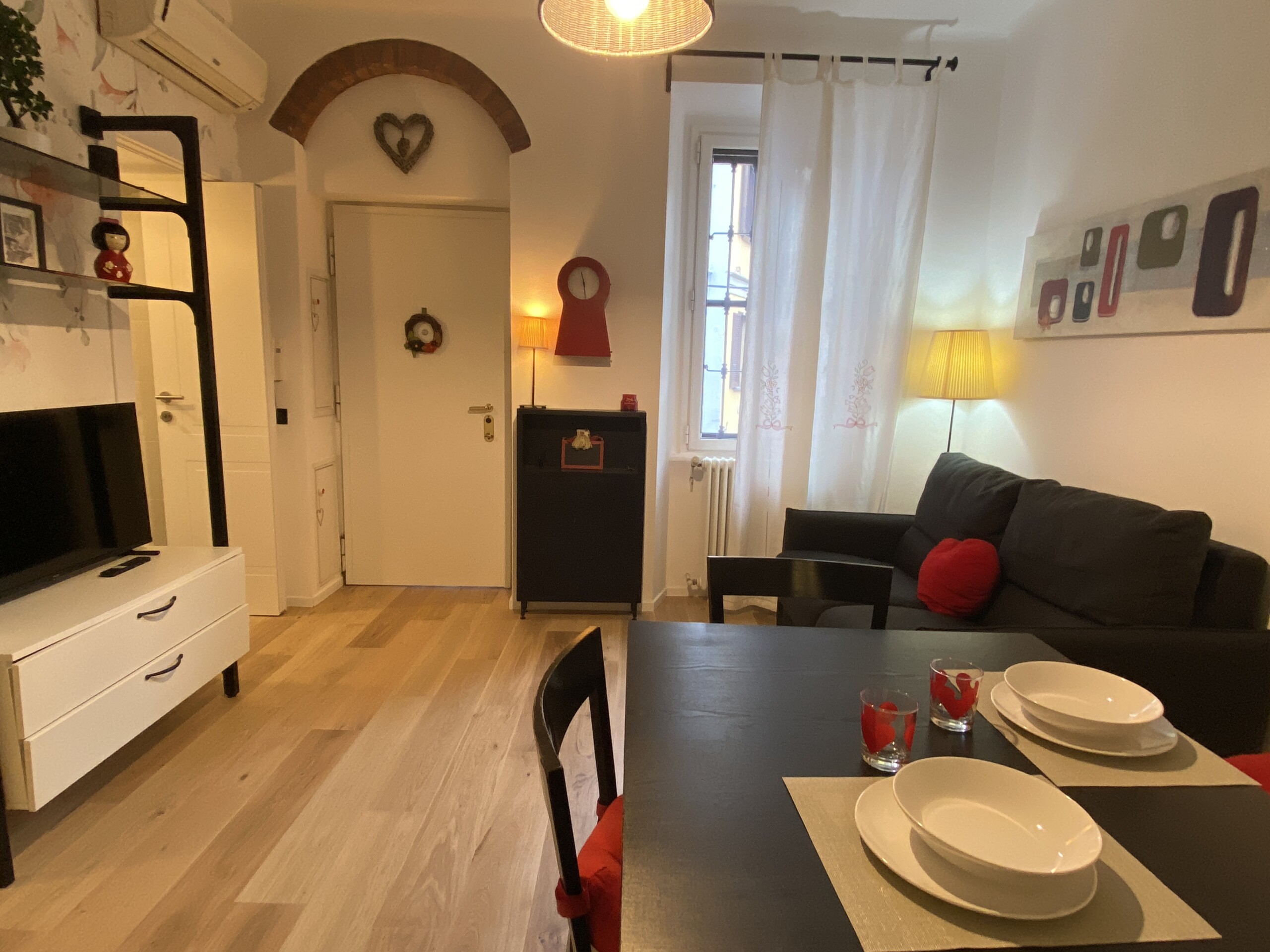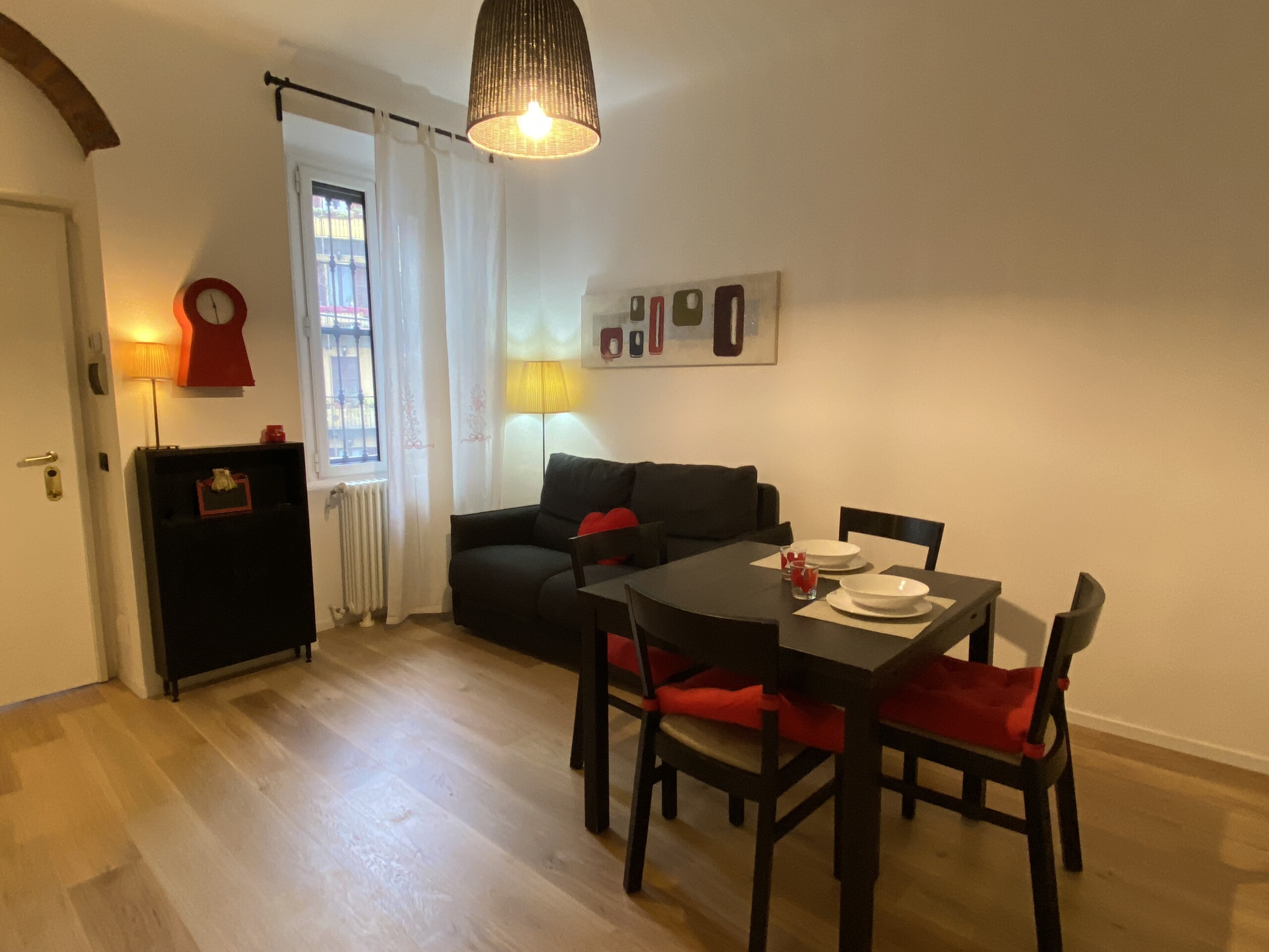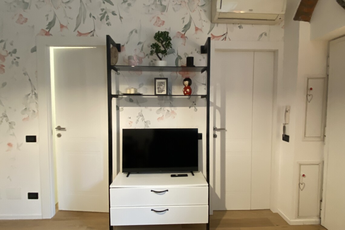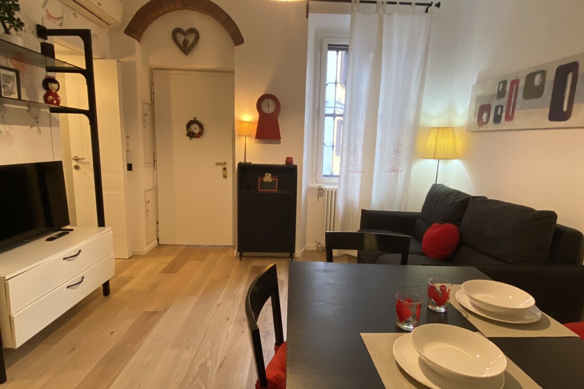This cozy, quiet, bright, and comfortable one-bedroom apartment is located on the second floor of a well-maintained historic “old Milan” building, served by an elevator and featuring a traditional ringhiera balcony.