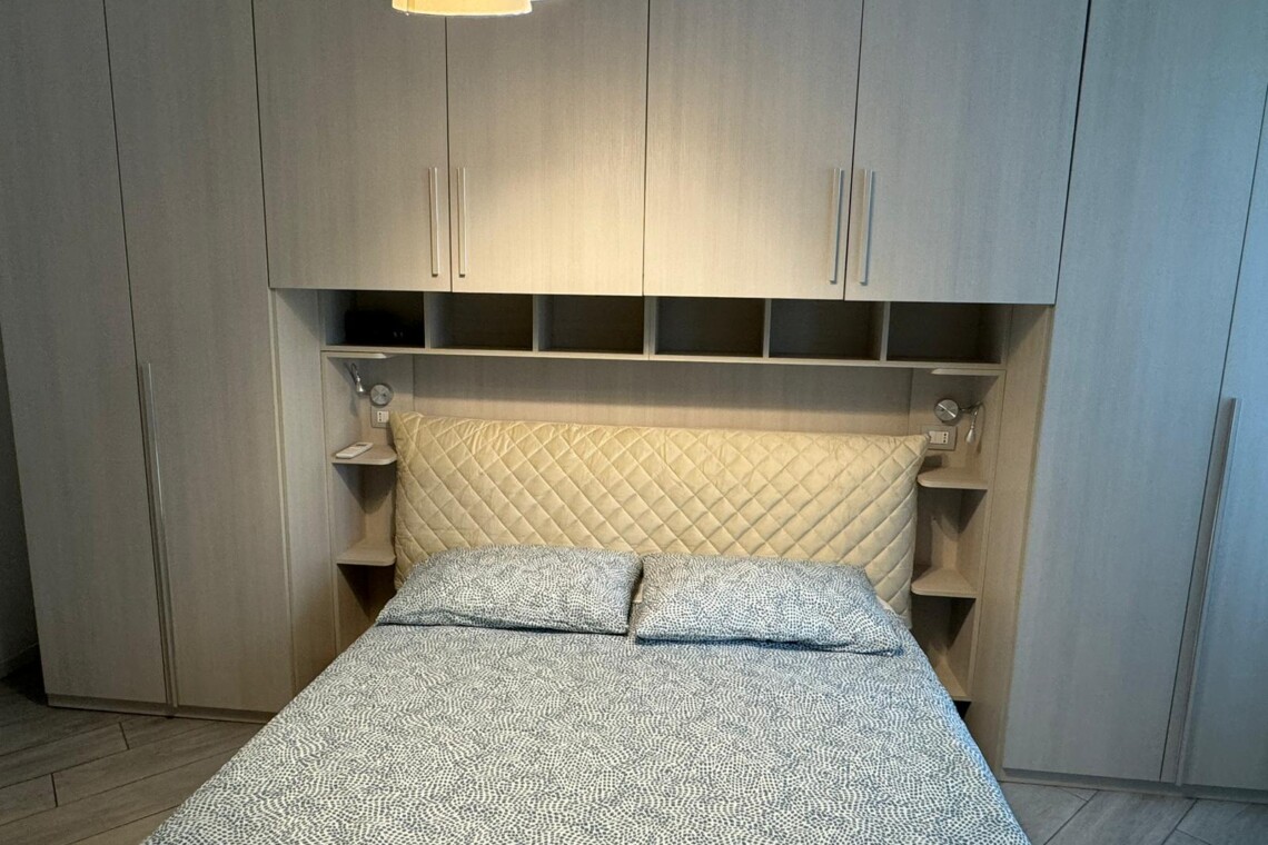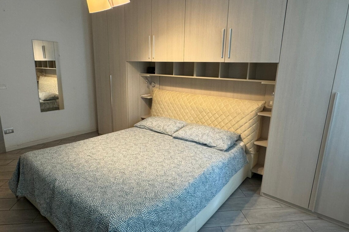 The large bedroom is very modern as well, it has a double bed with container, a huge wardrobe and two windows facing the quiet inner courtyard.
