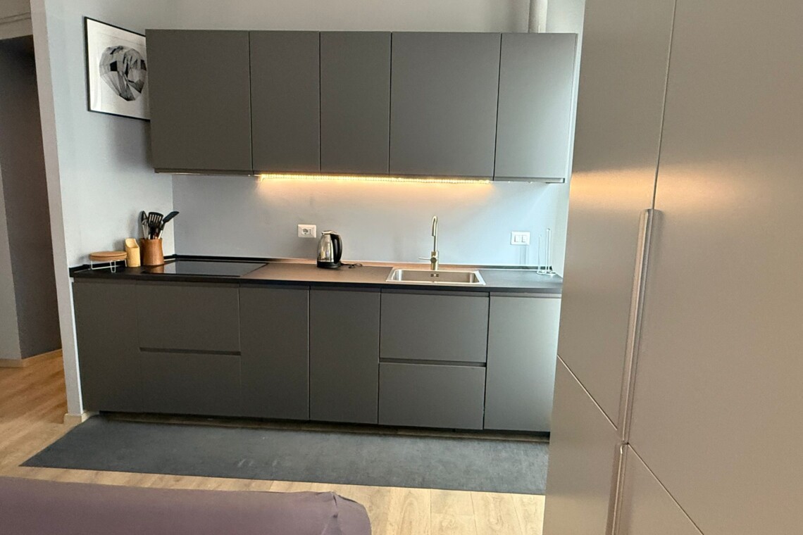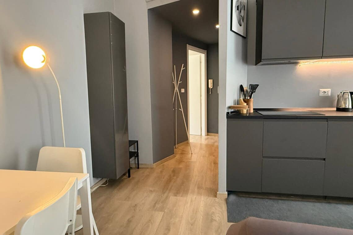 Completely refurbished and newly furnished in 2022, the apartment combines style and functionality. Inside, you’ll find a welcoming entrance hall and a spacious living room with a fully equipped open-plan kitchen. Moreover, the kitchen includes an induction hob, fridge, freezer, dishwasher, microwave oven, and washing machine, providing everything you may need for daily living.