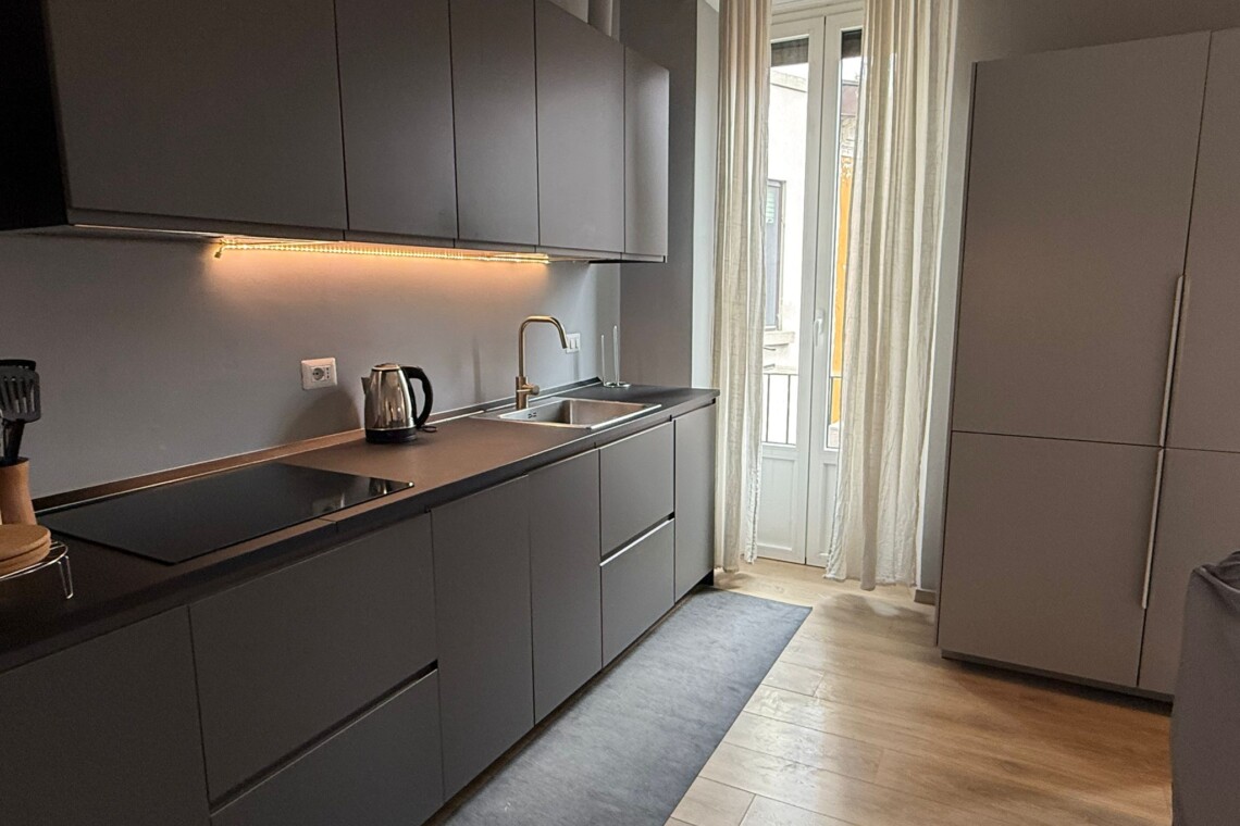 You’ll also benefit from air conditioning with two split units, fast Internet connection, and a 42″ flat-screen TV. Central heating, included in the building expenses, ensures maximum comfort during all seasons. Therefore, this bright apartment in Via Fiamma is one of the most comfortable two-bedroom apartments in Milan for medium-term stays.