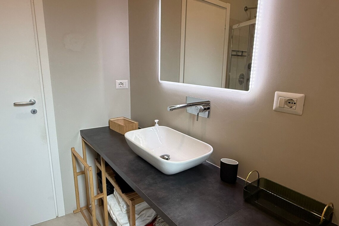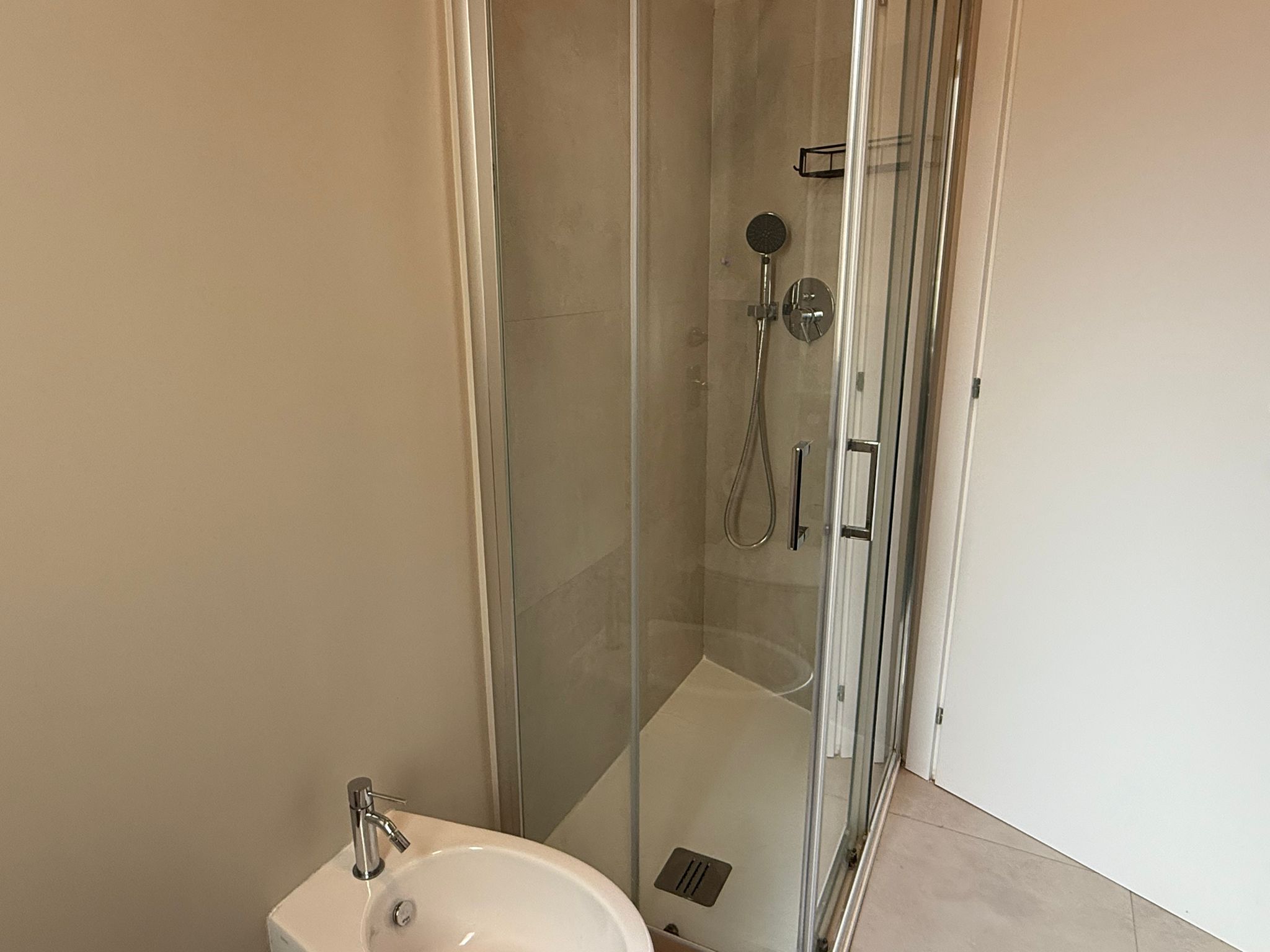 There are two bedrooms: one with a king-size bed and another with a French bed (one-and-a-half size). In addition, the modern bathroom features a shower and a window for natural light and ventilation. A small balcony, adjacent to the kitchen, adds a pleasant outdoor space for breakfast or a relaxing break.