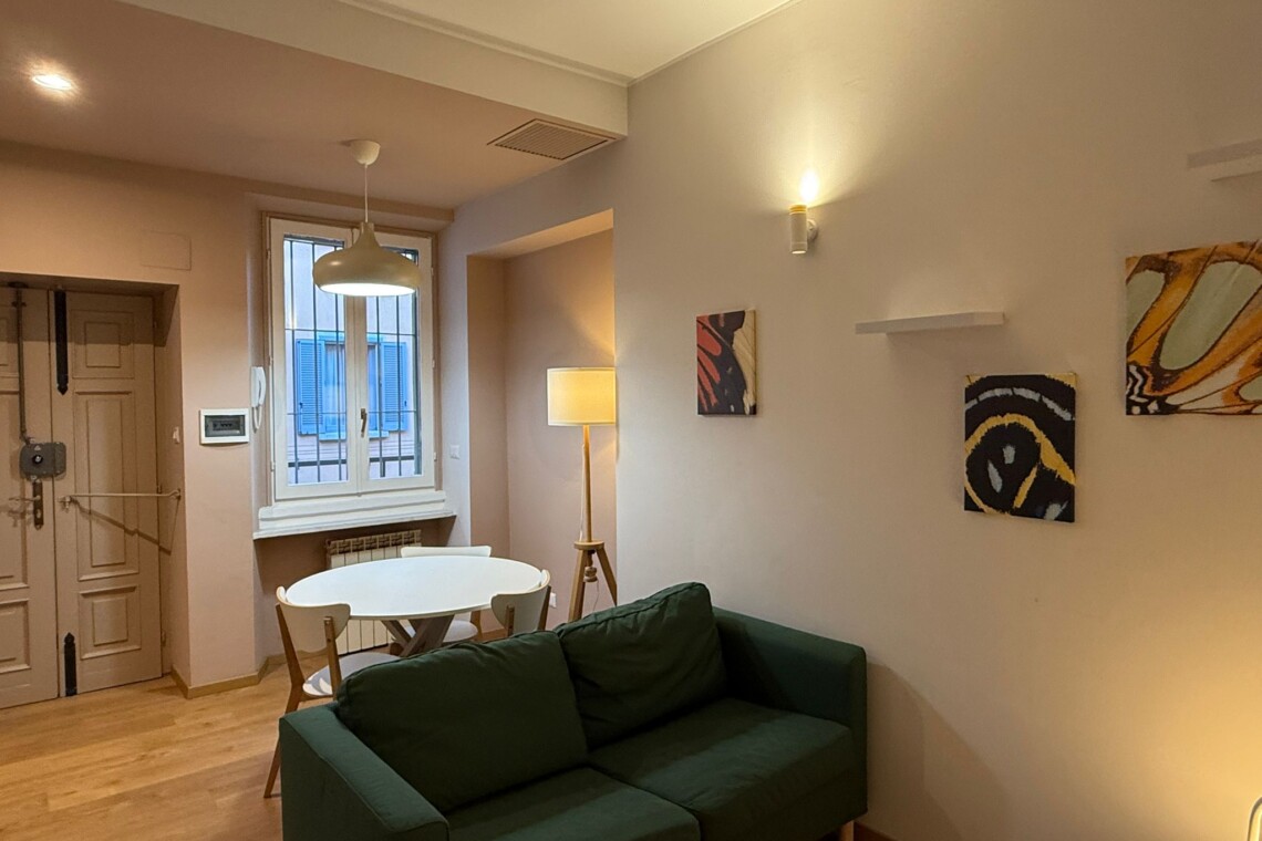 This charming one-bedroom apartment is located in a central area of Milan, on the second floor of a well-maintained historic building from the 1920s-30s.