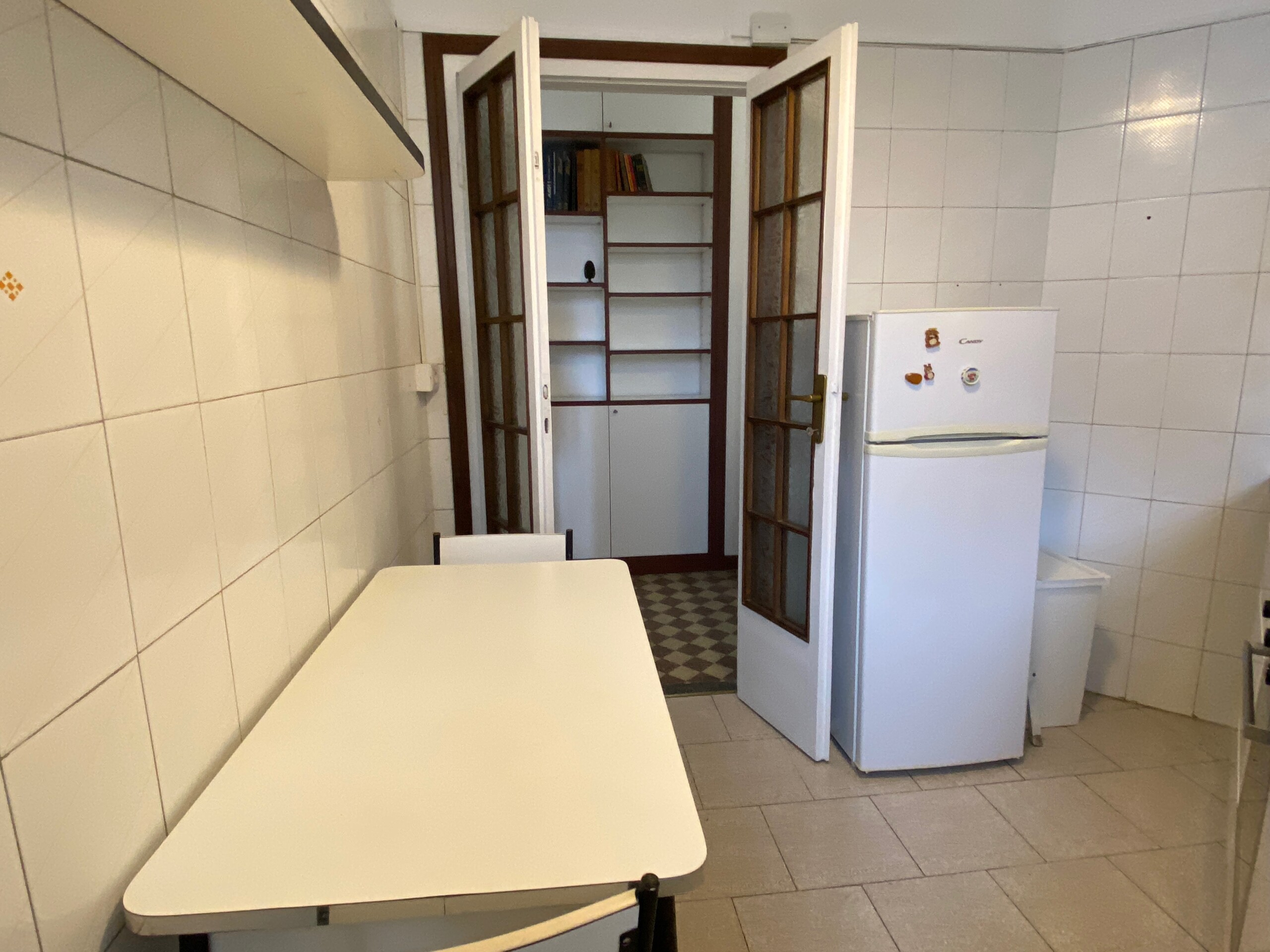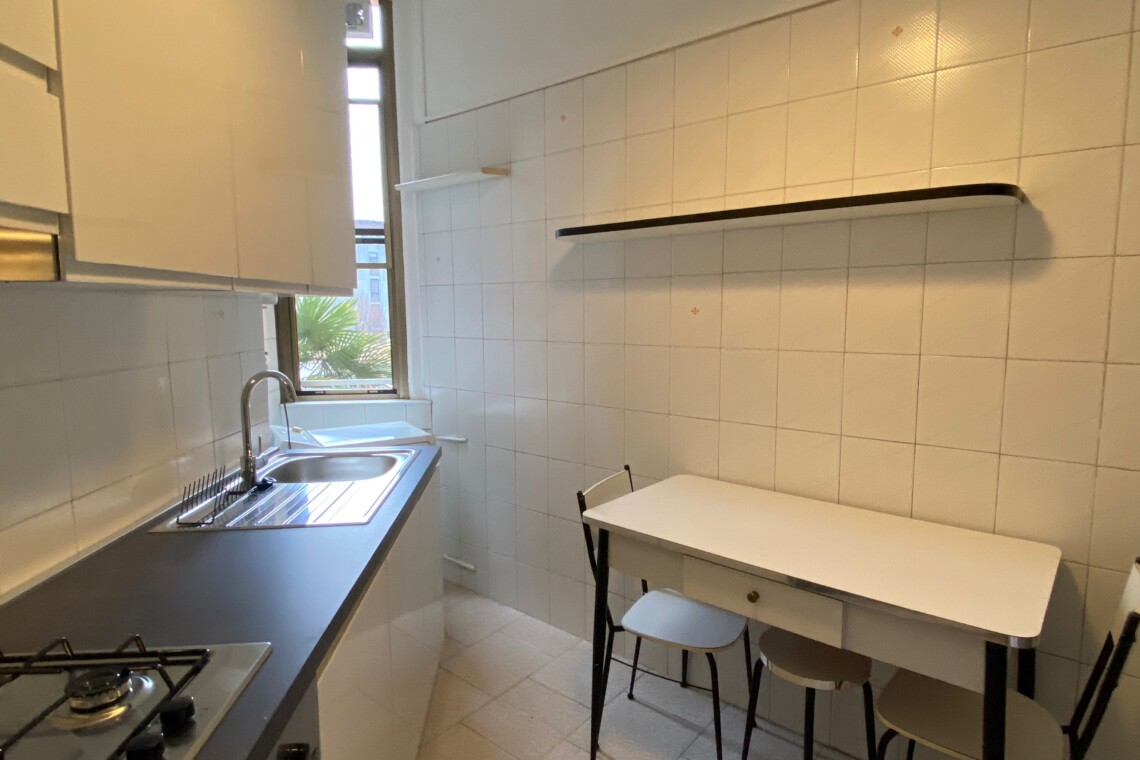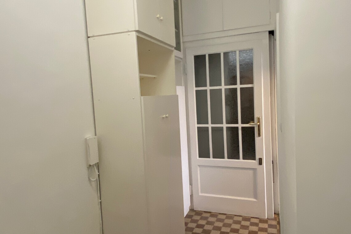 Entering in the apartment the corridor leads you to the bright and spacious living room, with a sofa double bed, table  & chairs, the TV and a nice balcony, facing the inner quiet courtyard.