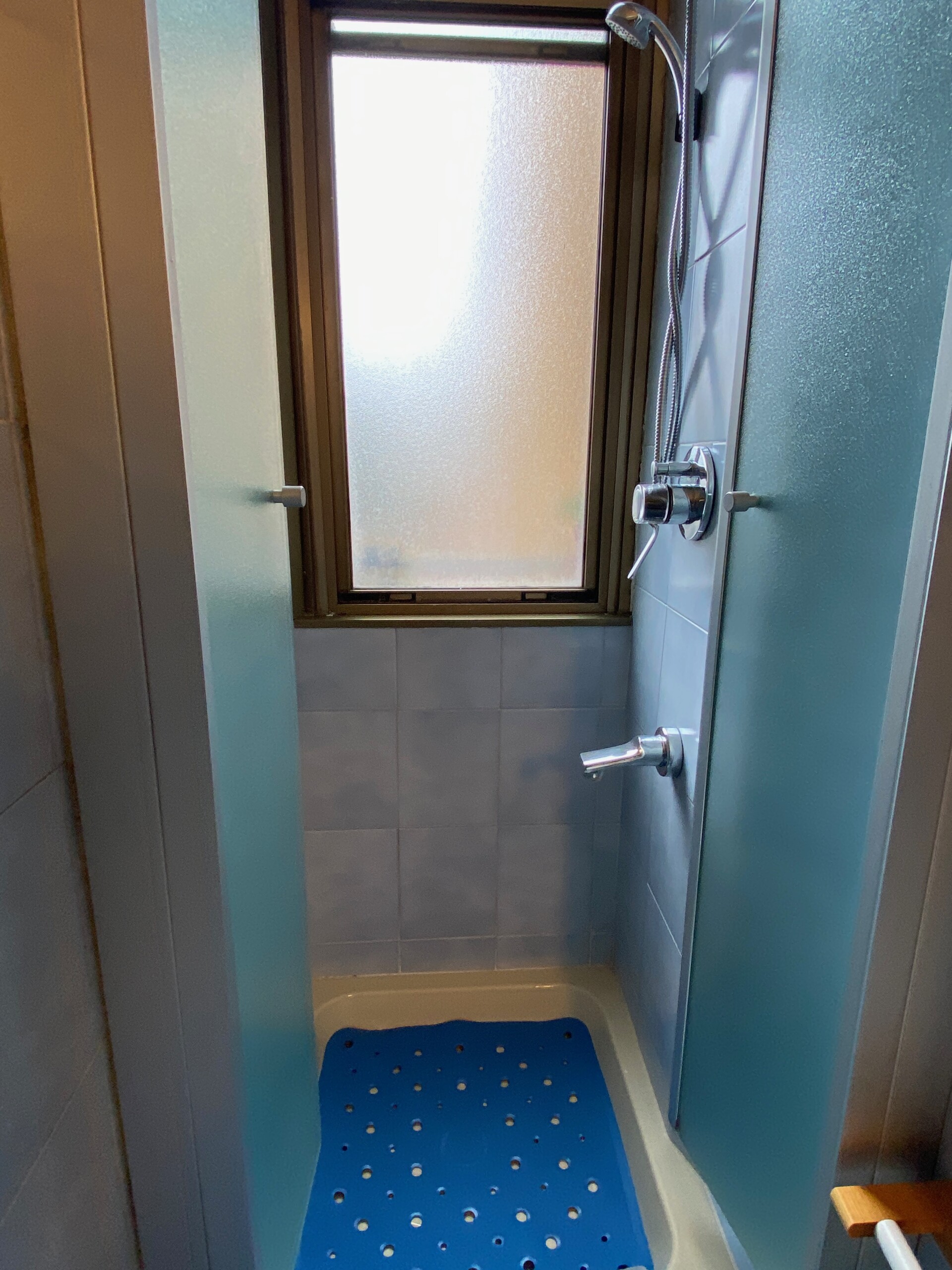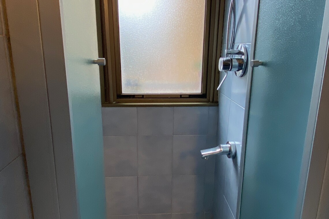 Bathroom with shower and bidet.