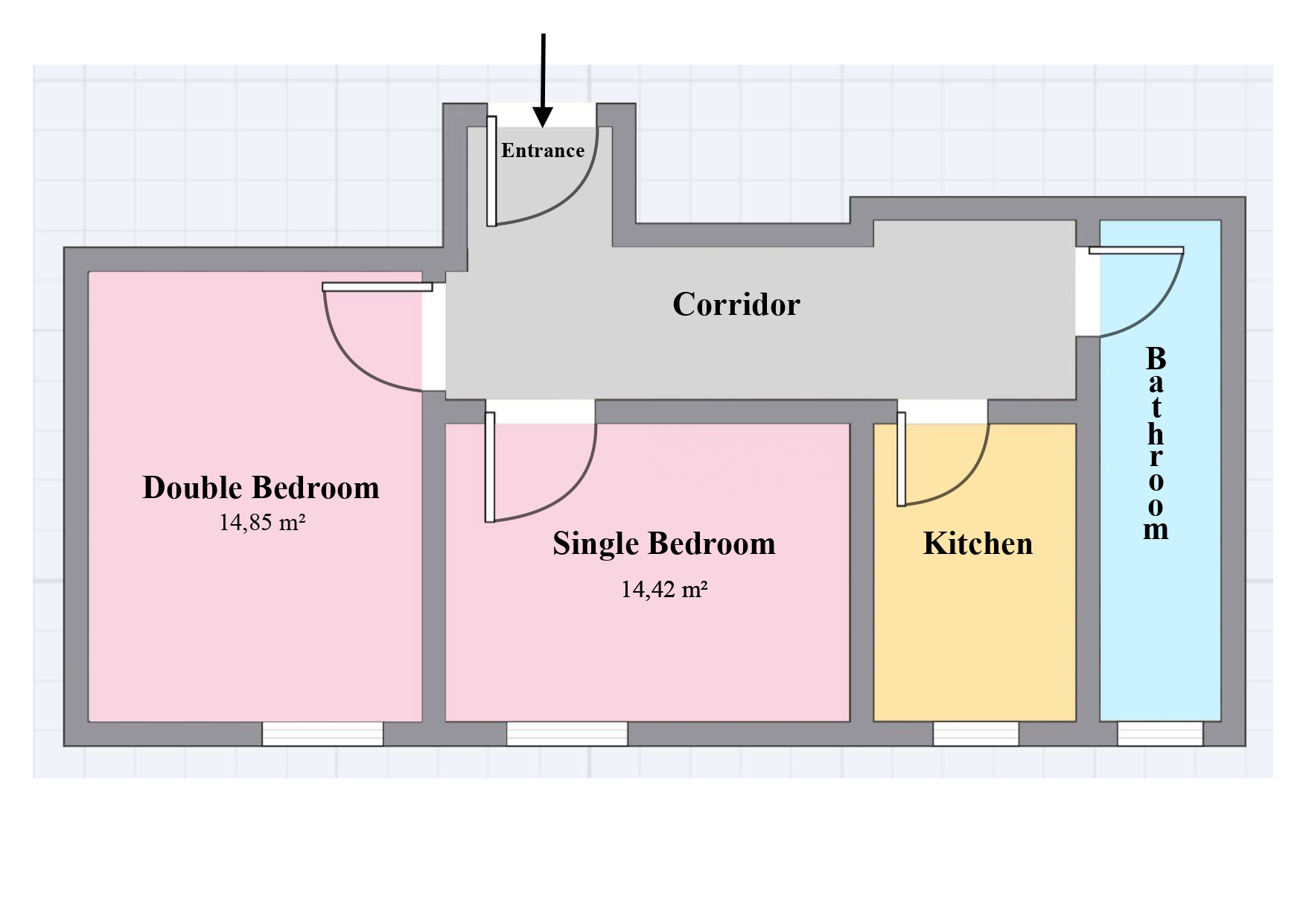 Comfortable and bright apartment with 2 bedrooms (3 beds), the kitchen and the bathroom.