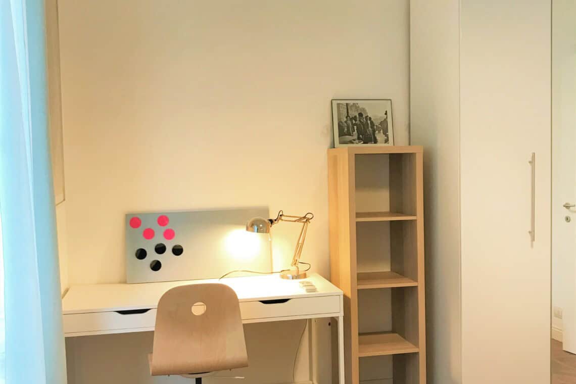 In the other bedroom there are a French size bed, a wardrobe and a desk.