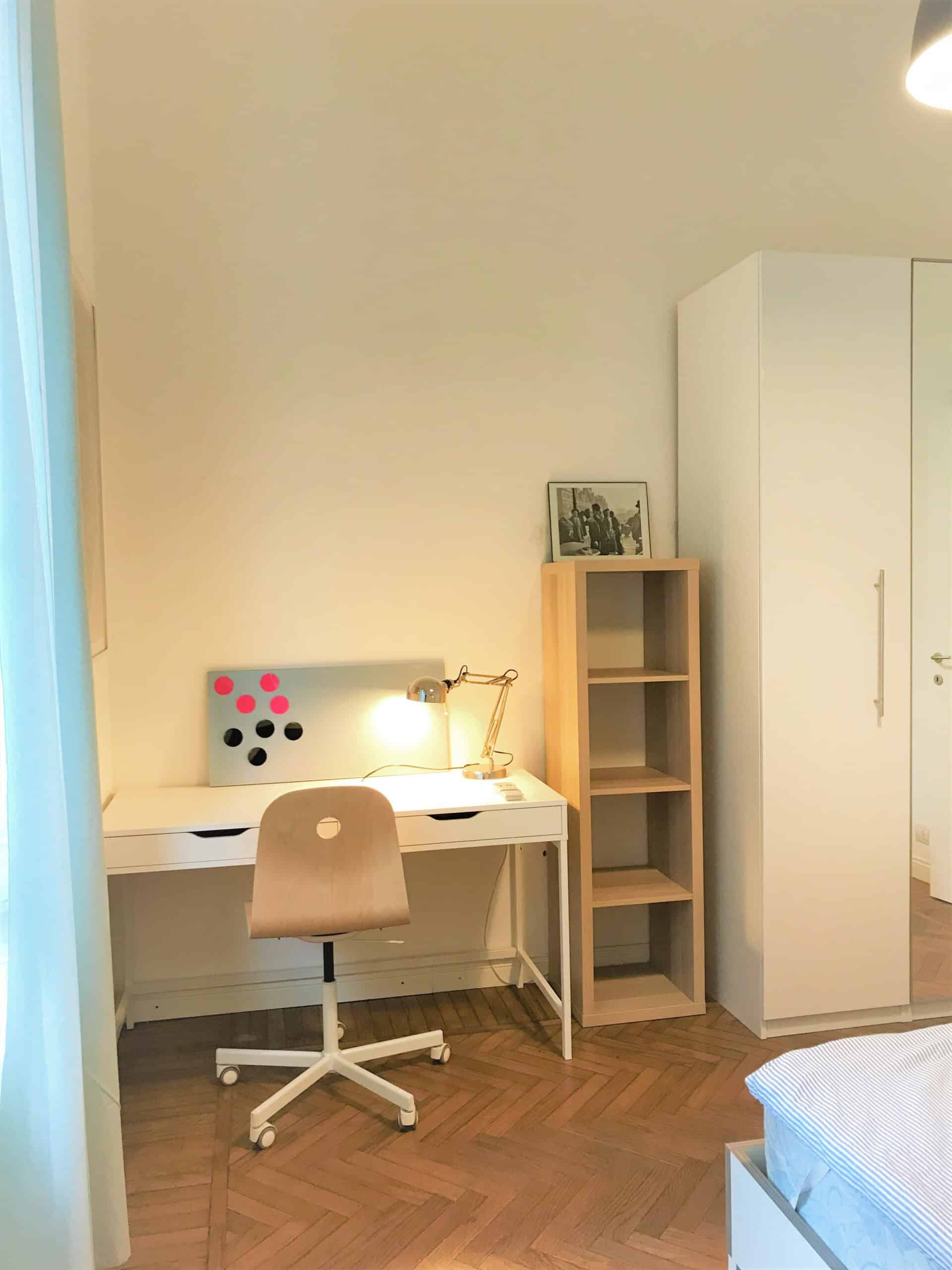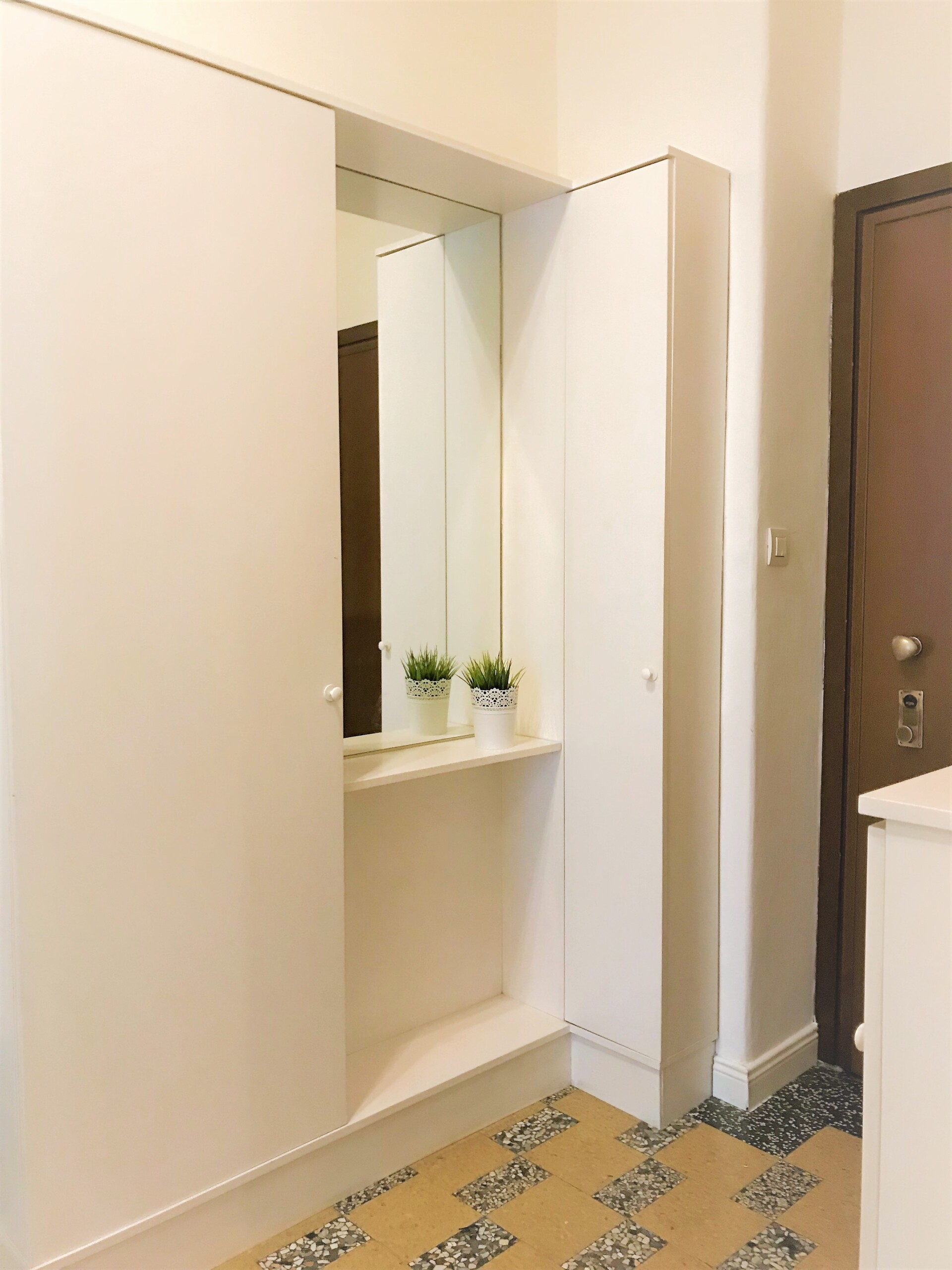 The apartment is very bright and quiet and it’s on the mezzanine floor of a nice old style building with elevator.