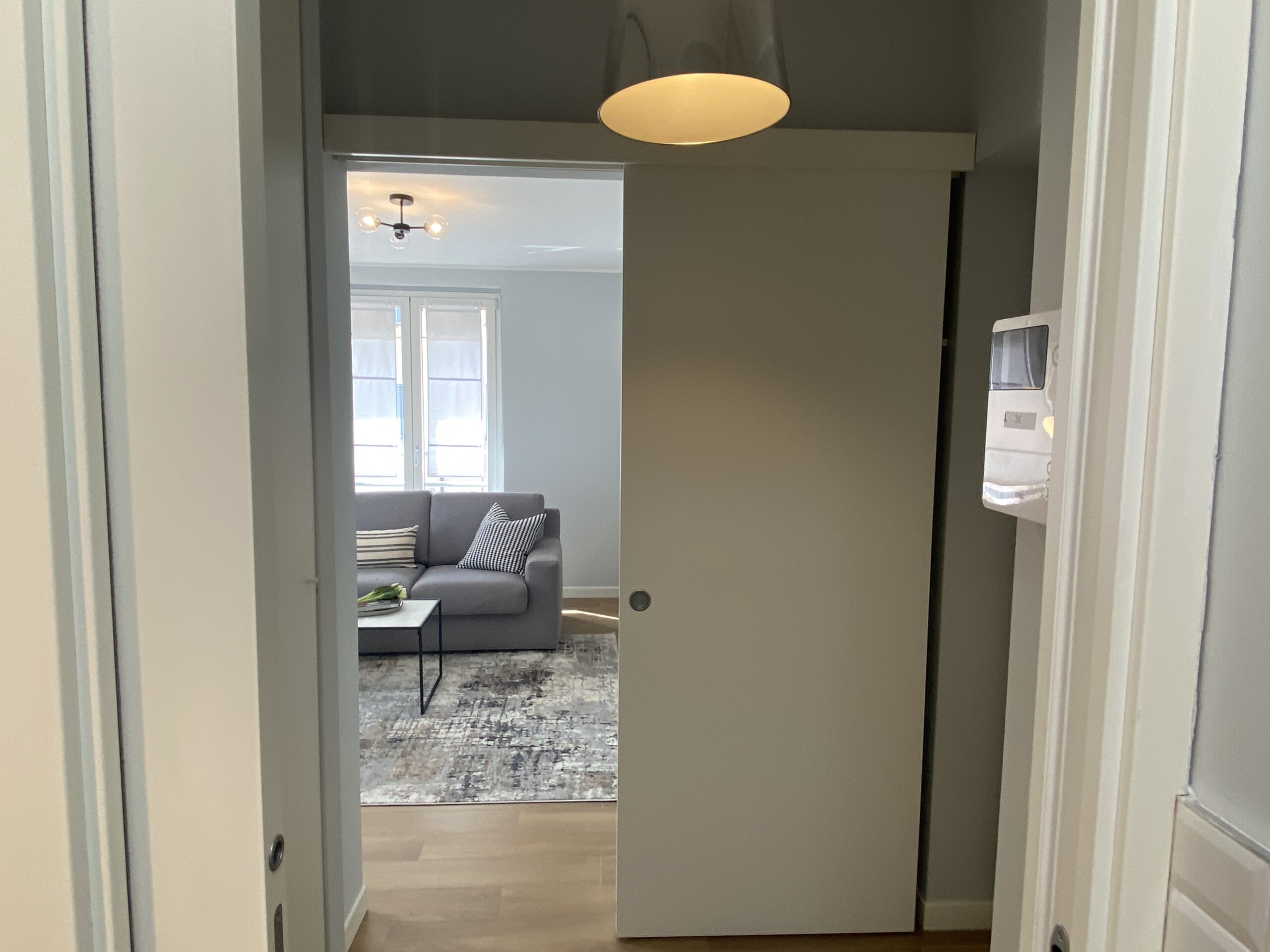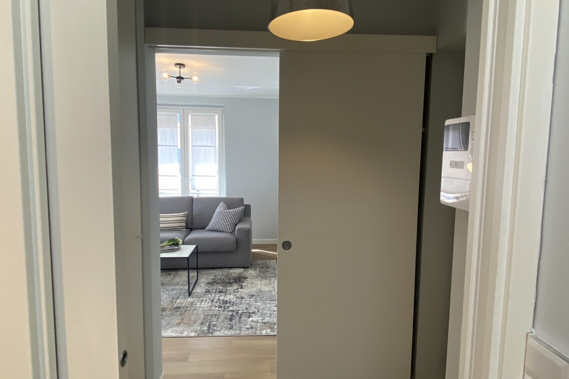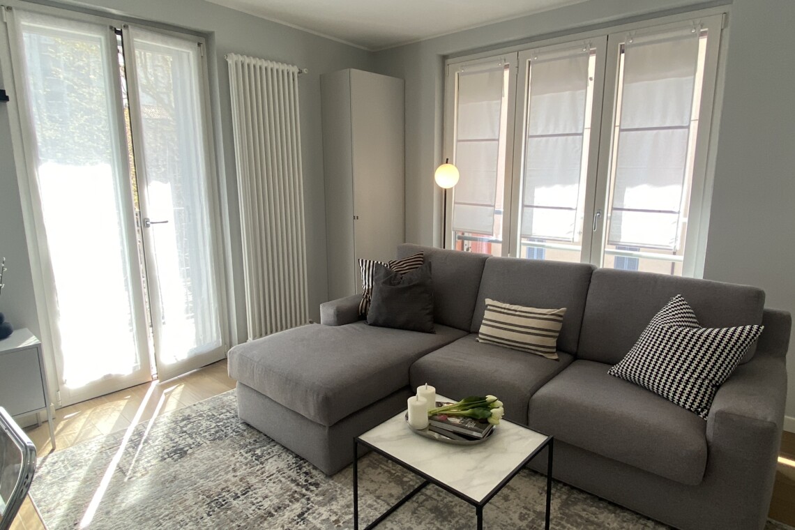 This bright and modern one-bedroom apartment is located on the second floor of a charming early 1900s building, set within a quiet internal courtyard. Thanks to its position away from the street and surrounded by greenery, the apartment offers a very peaceful and relaxing living environment.