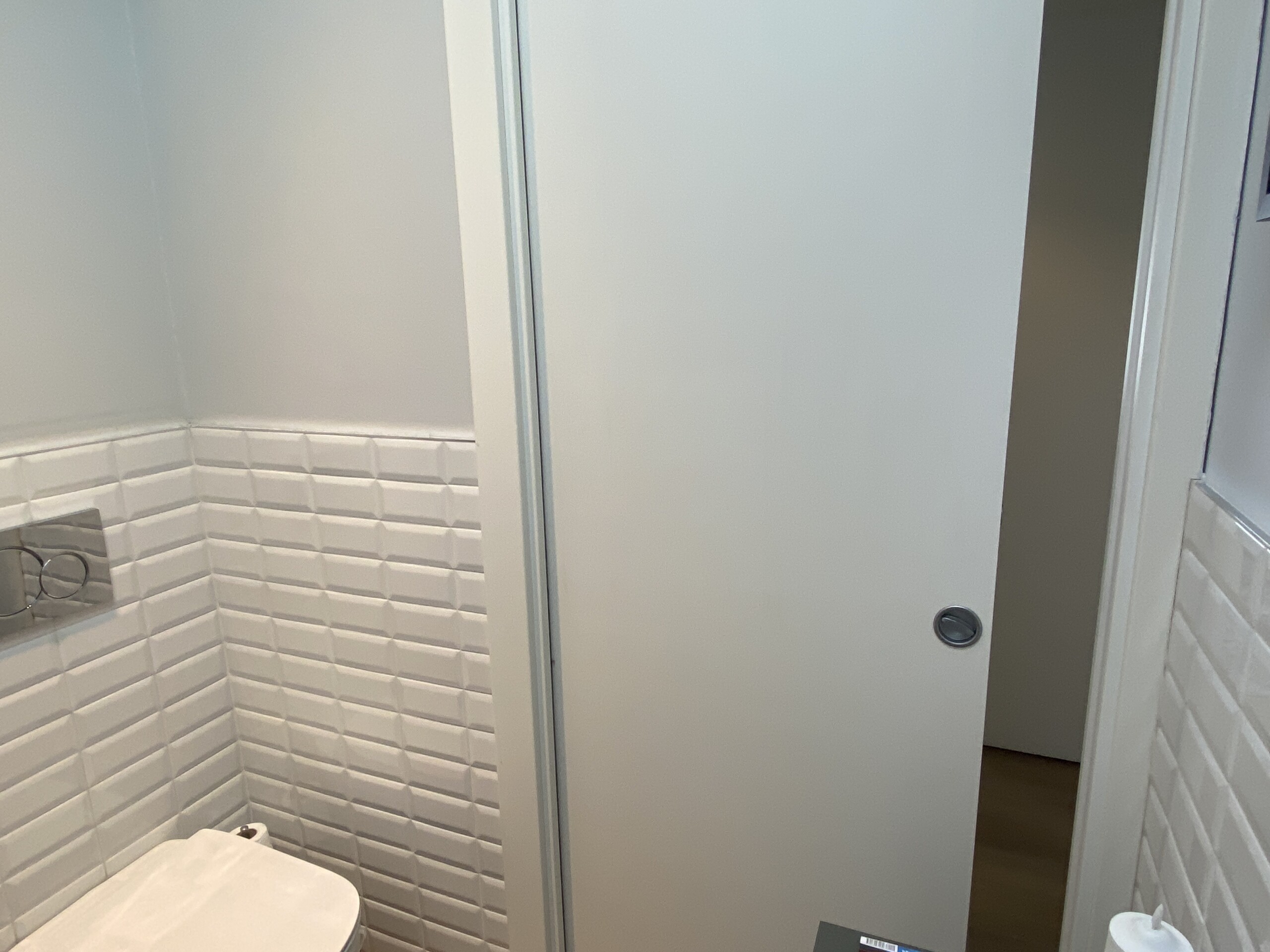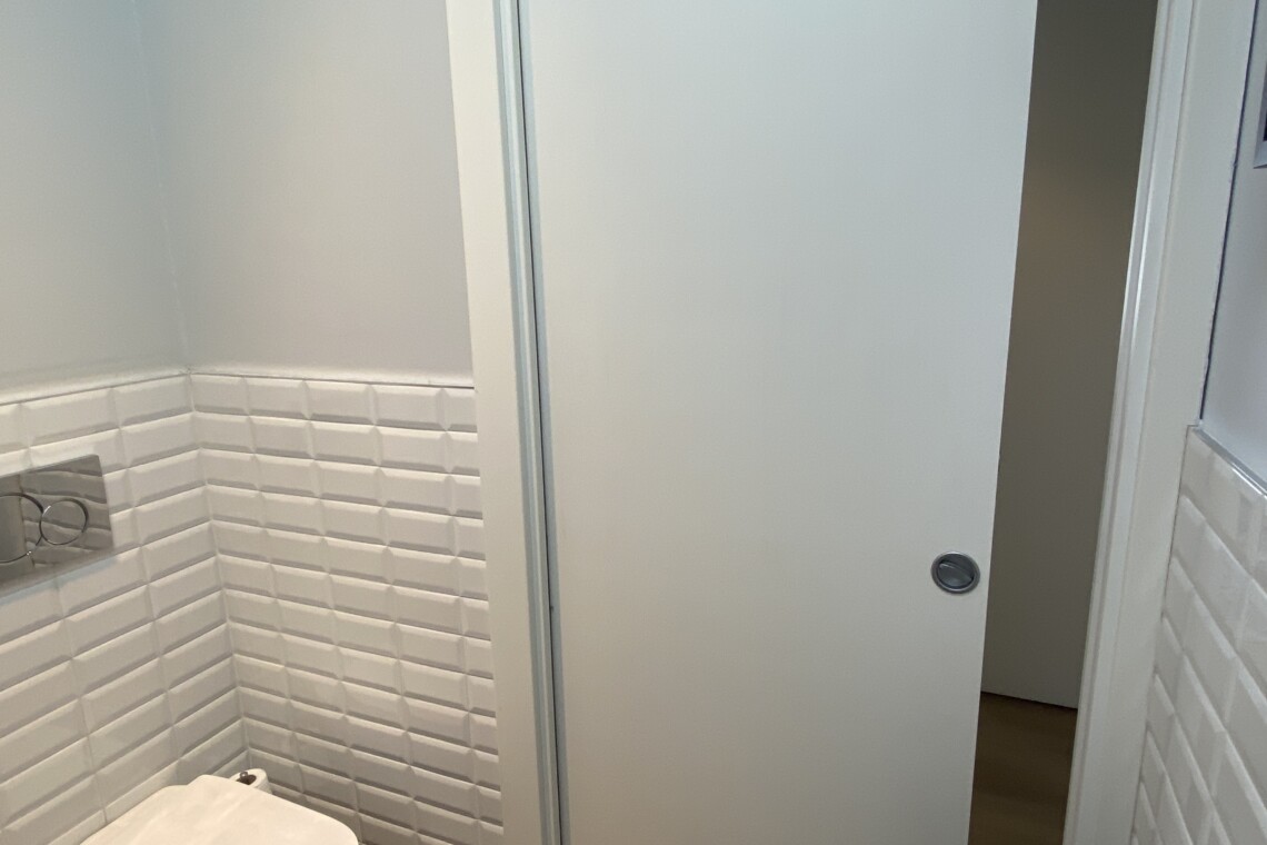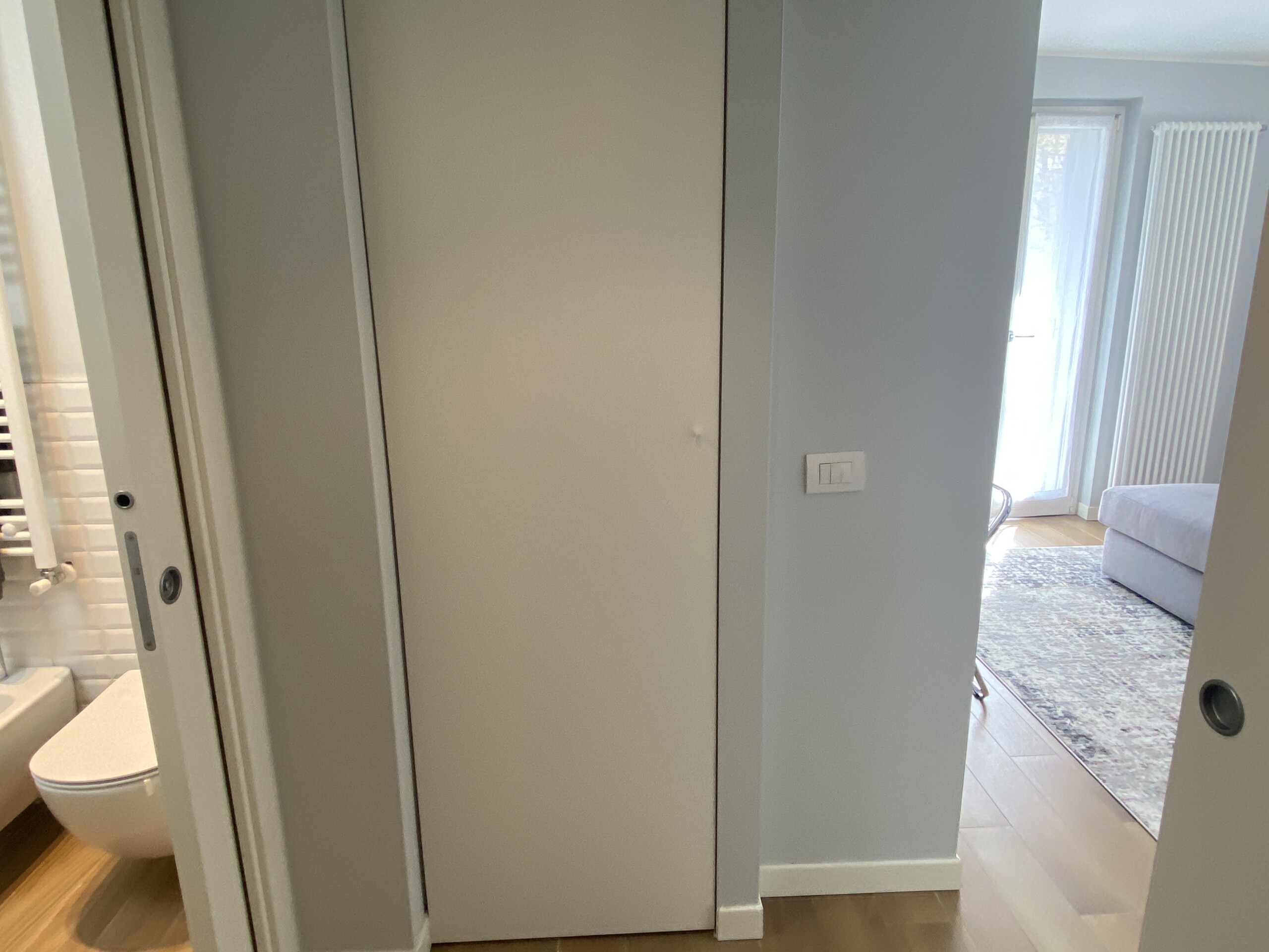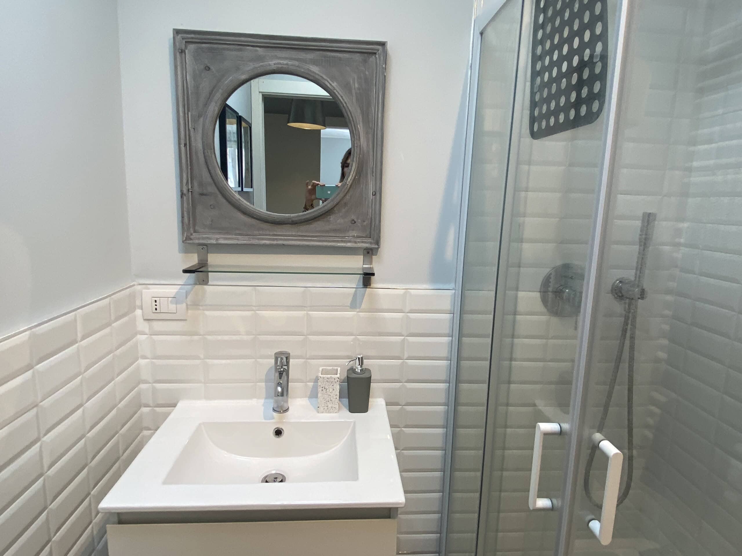 Returning to the entrance, on the left, you will find a modern bathroom equipped with a shower and bidet.
