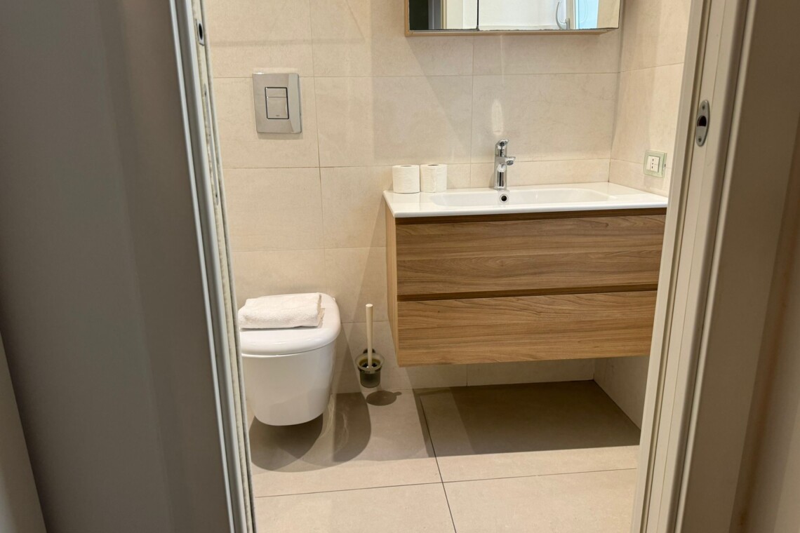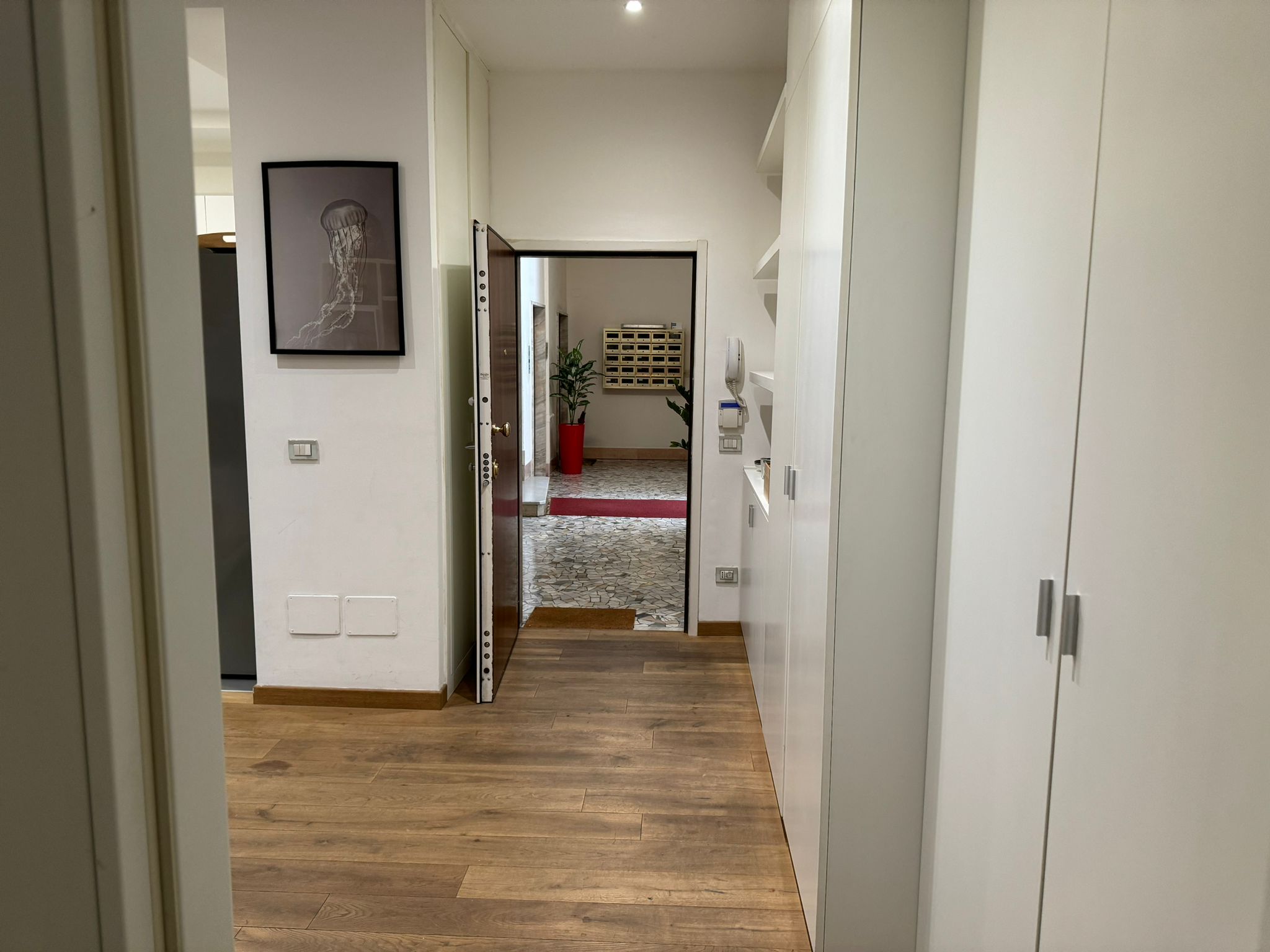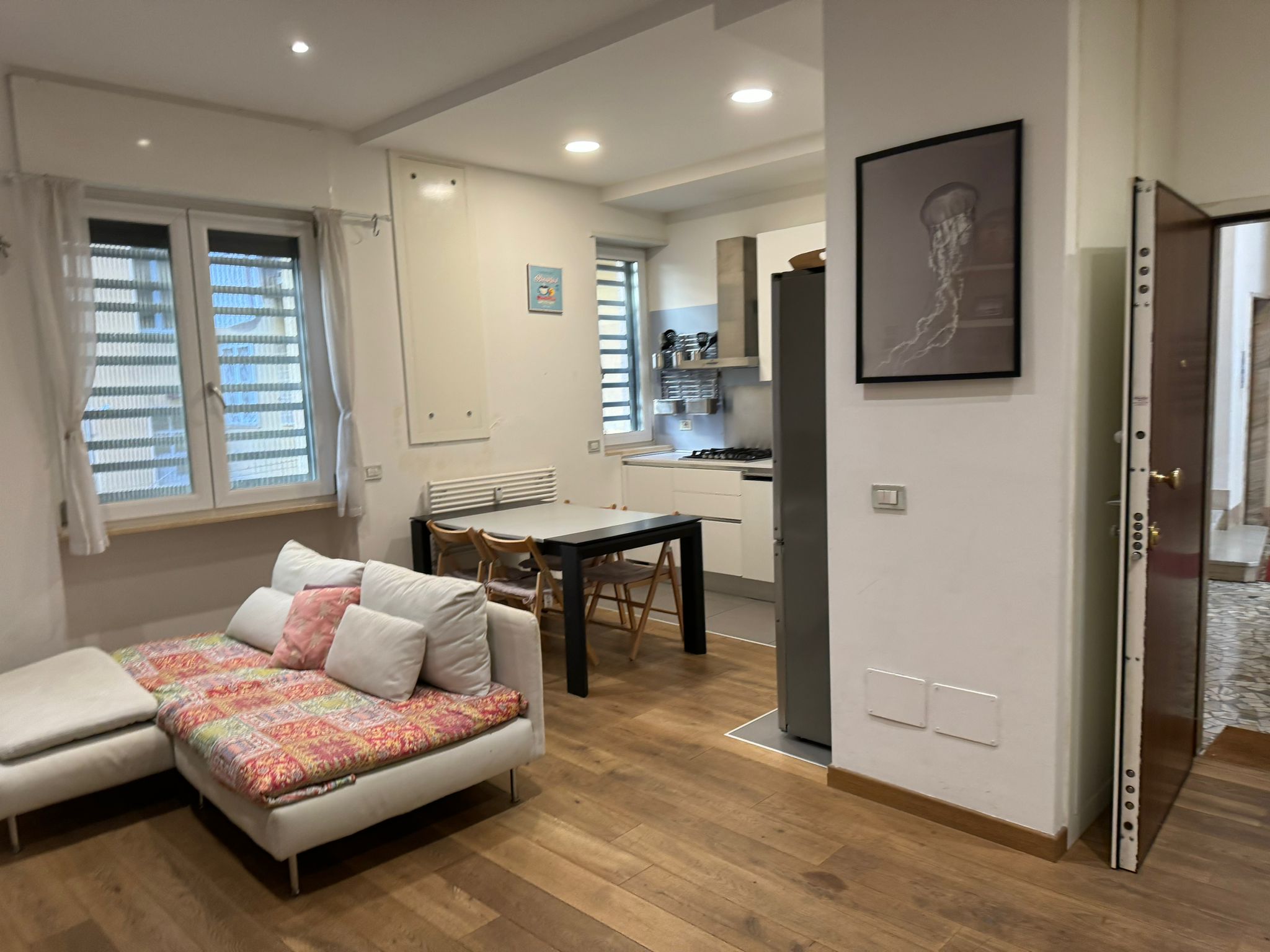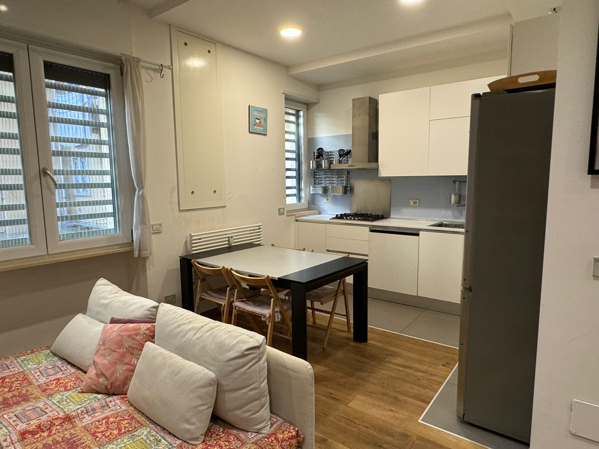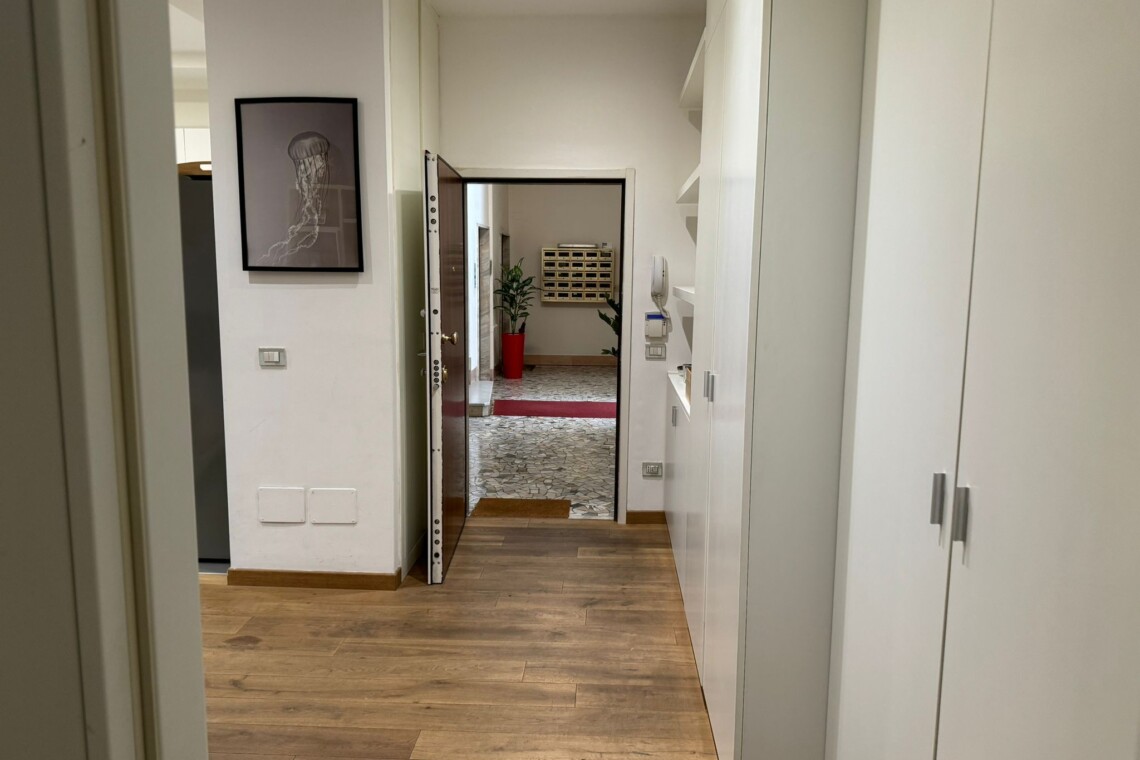 The apartment has a beautiful wooden floor, electric rolling shutters and brand-new 3 glass-layers windows.
