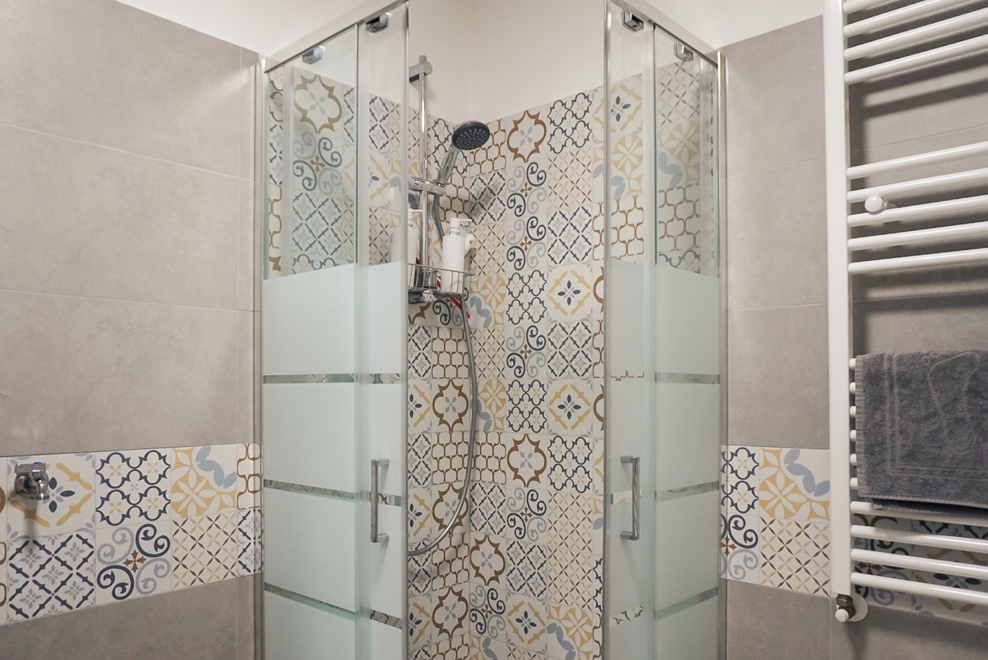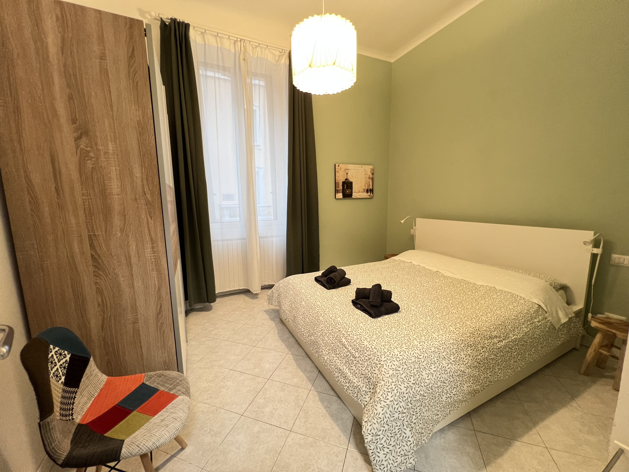 The bedroom includes a double bed and a large wardrobe (it’s possible to add a desk, if requested). The bathroom is modern and comes with a spacious shower. The apartment is located on the first floor (no elevator) of a charming, well-maintained historic building.