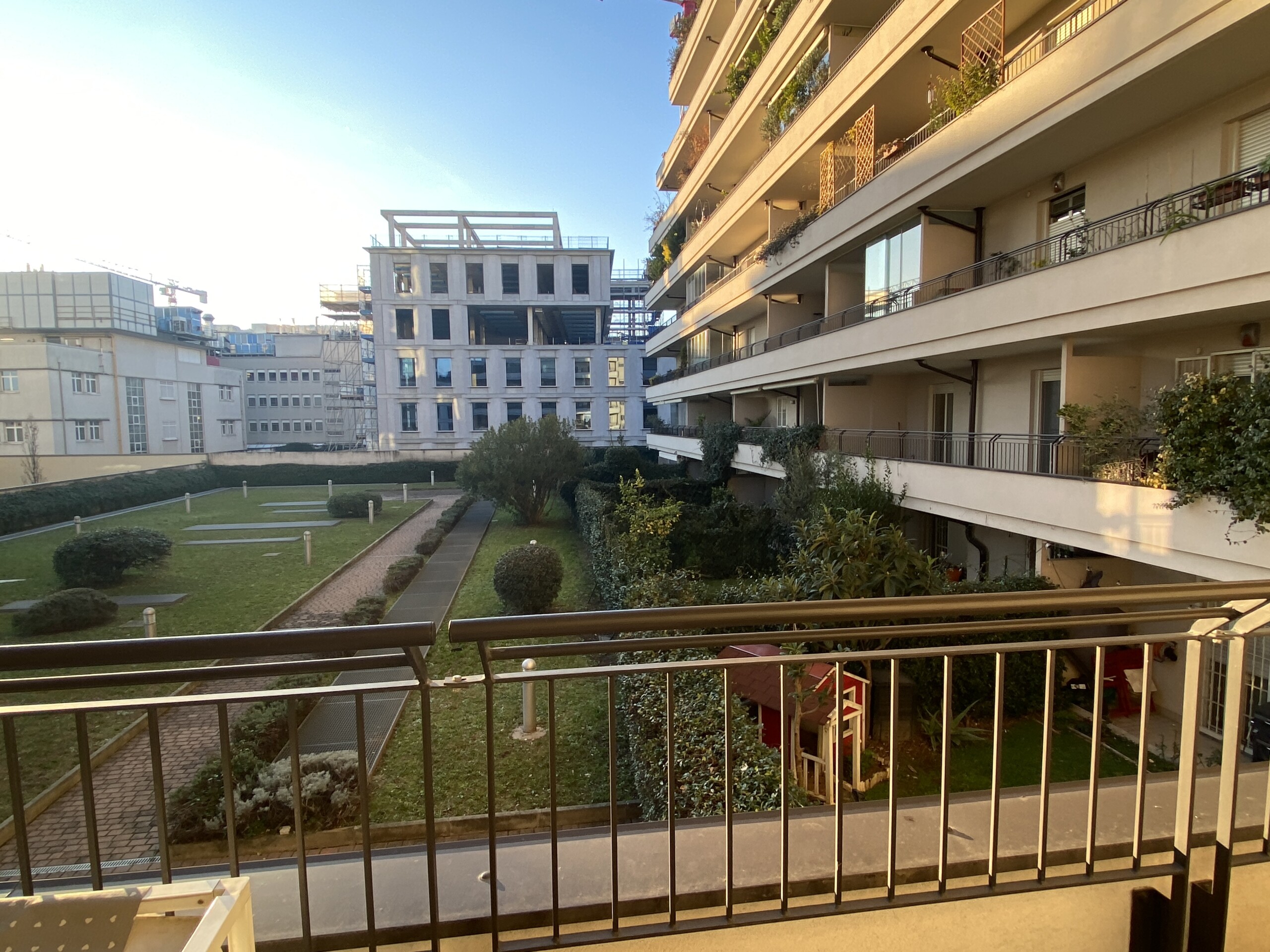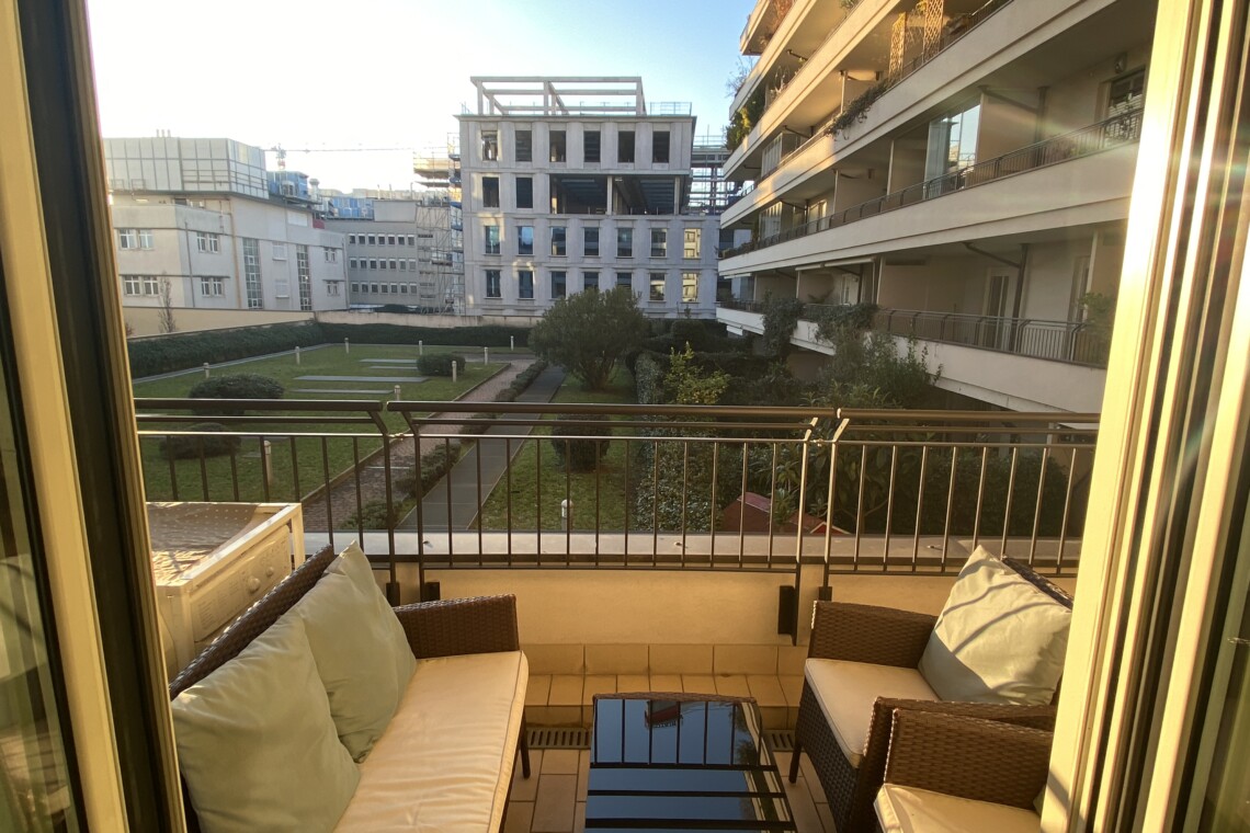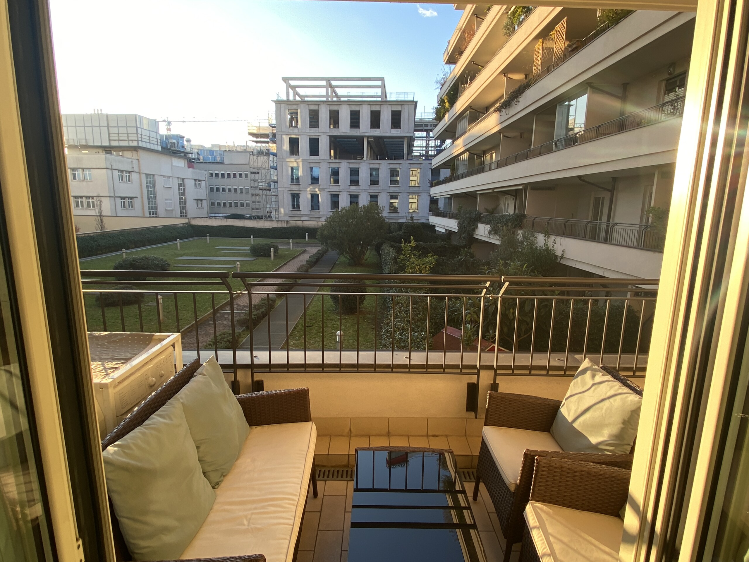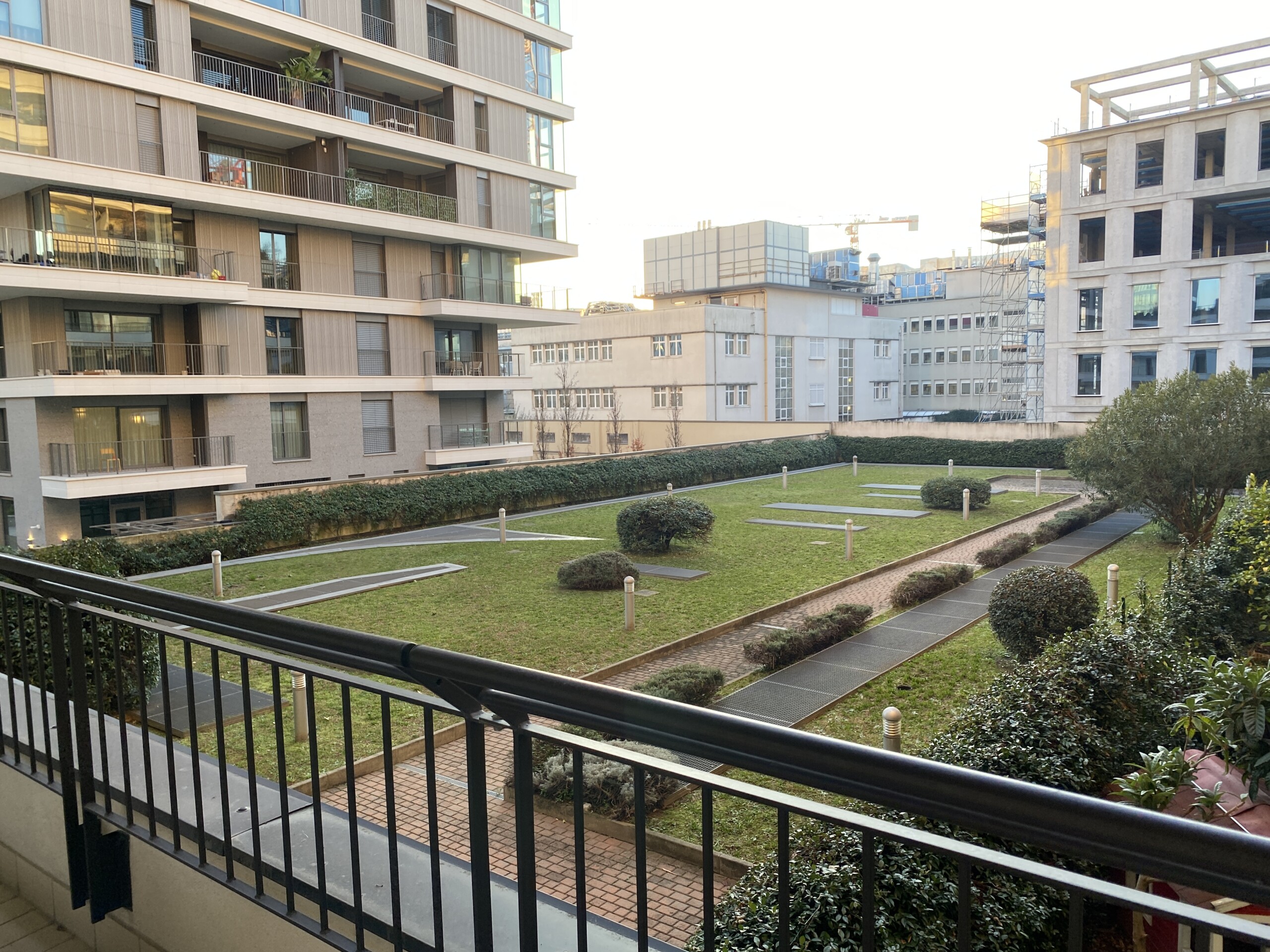 Discover this bright, modern and super quiet one-bedroom apartment with a spacious balcony overlooking a beautiful inner courtyard with gardens and trees. It is located on the 2nd floor of a modern building in excellent condition, with elevator and doorman service. The concierge is extremely useful both for security and for receiving packages and mail when ordering online.