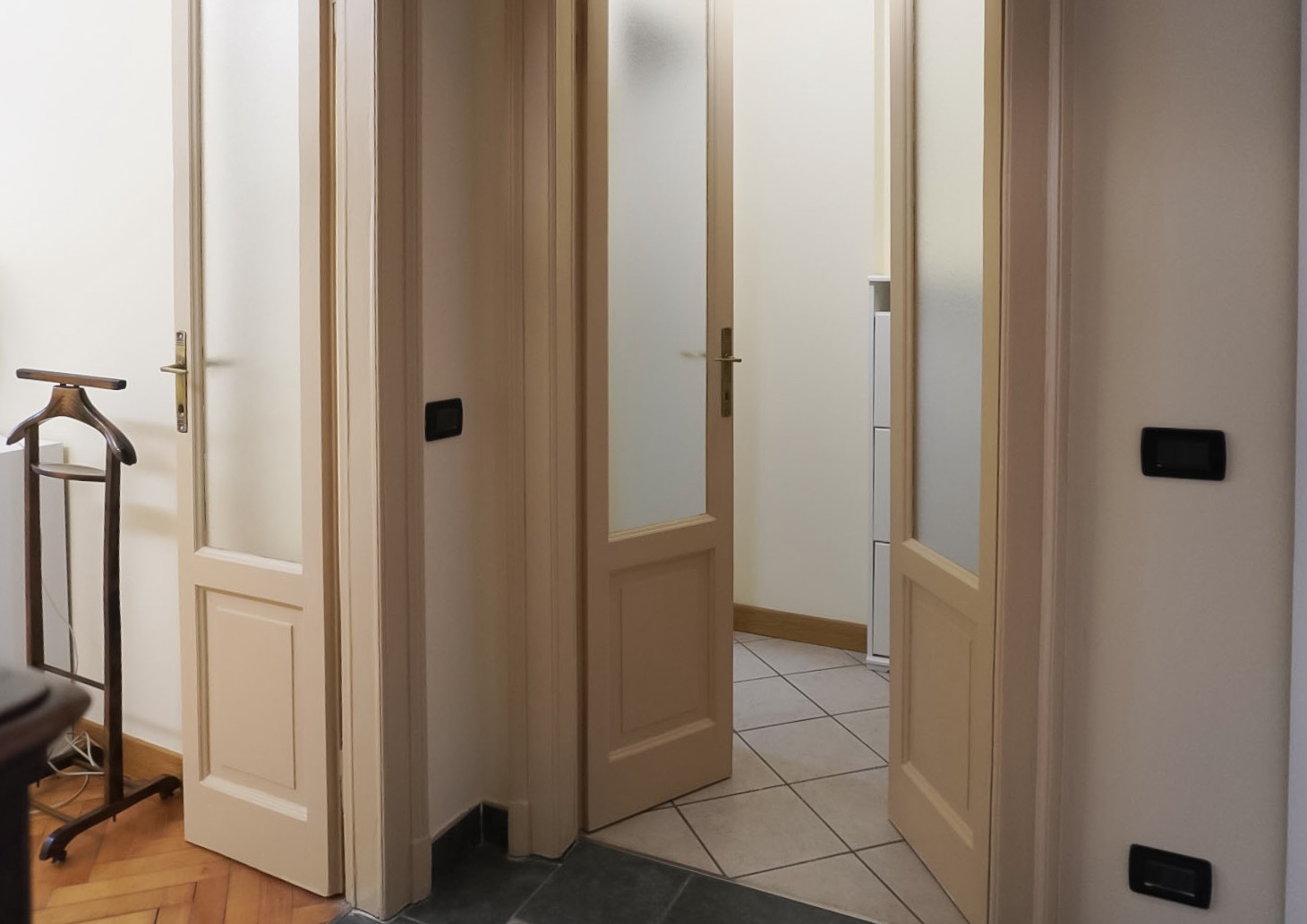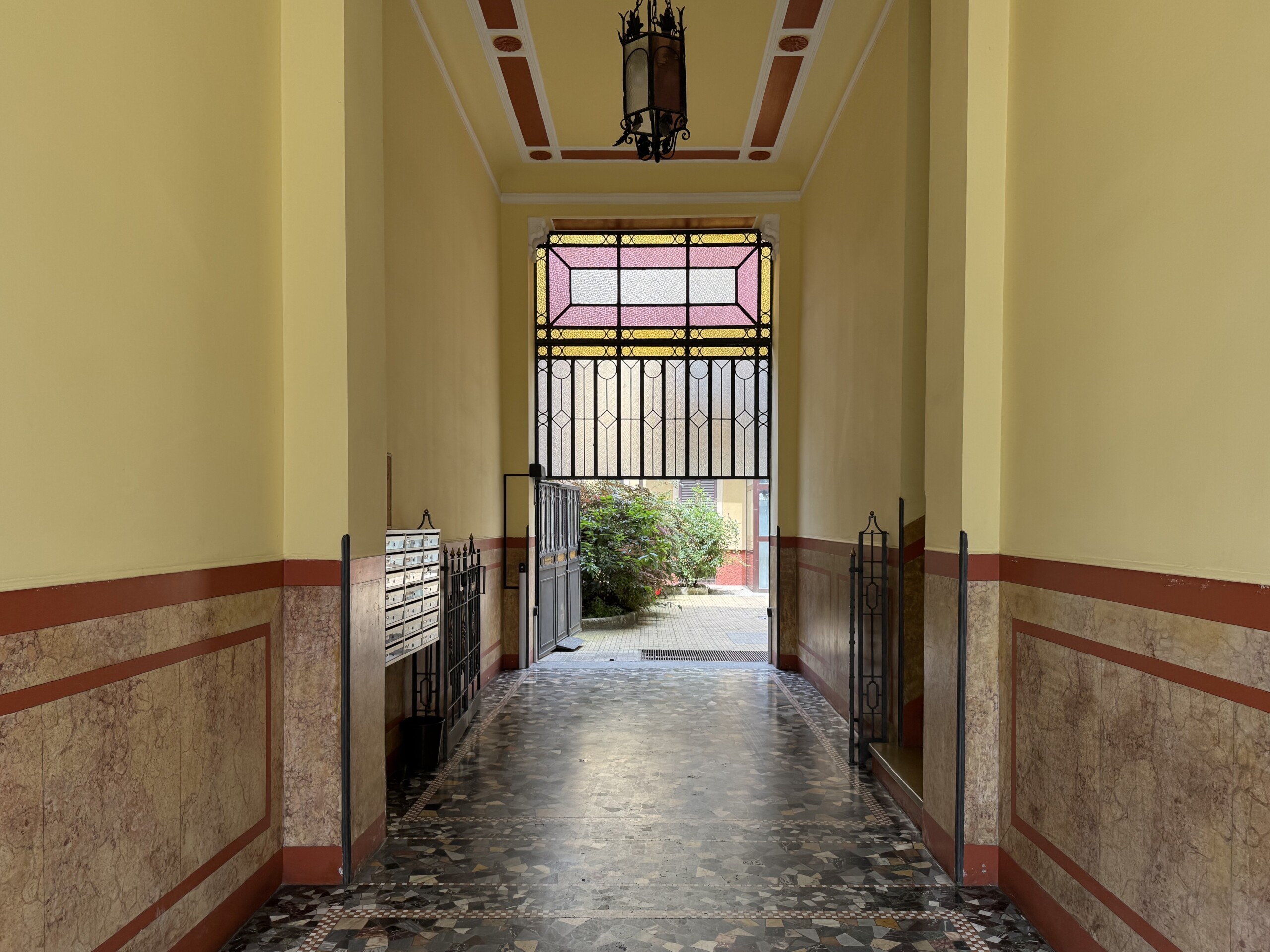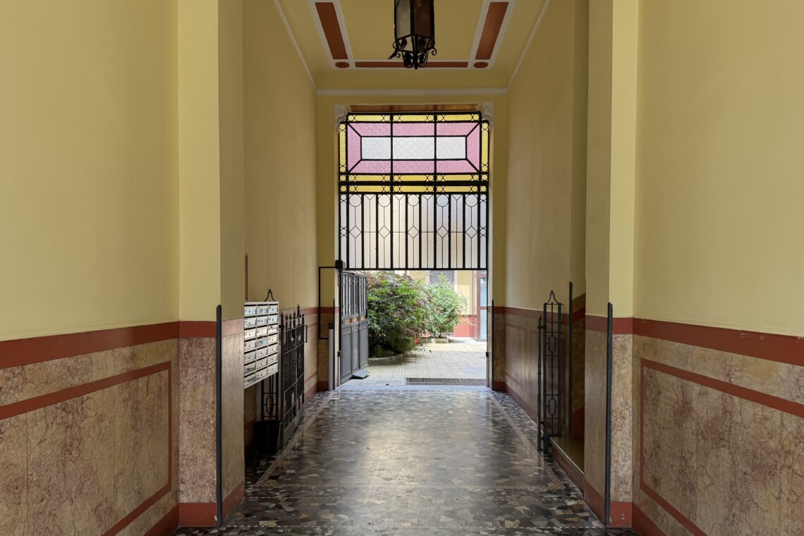 This recently renovated apartment is located on the third floor of a beautiful, well-maintained historic building with an elevator. It is part of the internal section of the building, so it doesn’t face the street and overlooks the inner courtyards on both sides, making it very quiet and bright.