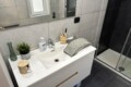 Modern bathroom with shower and washing machine.