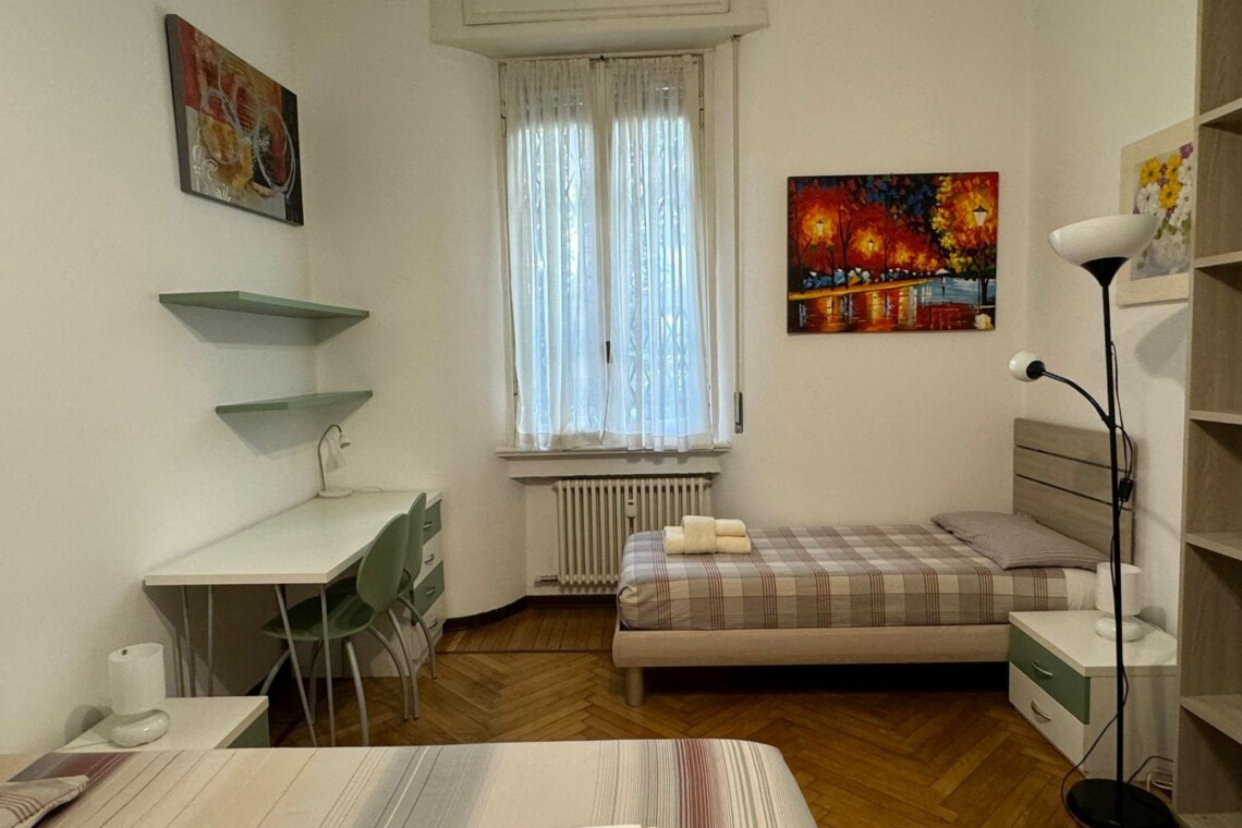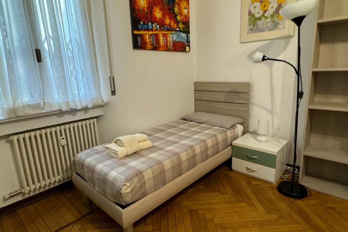 Two-bedroom apartment in Milan, recently renovated and fully furnished with modern furniture and wooden flooring.