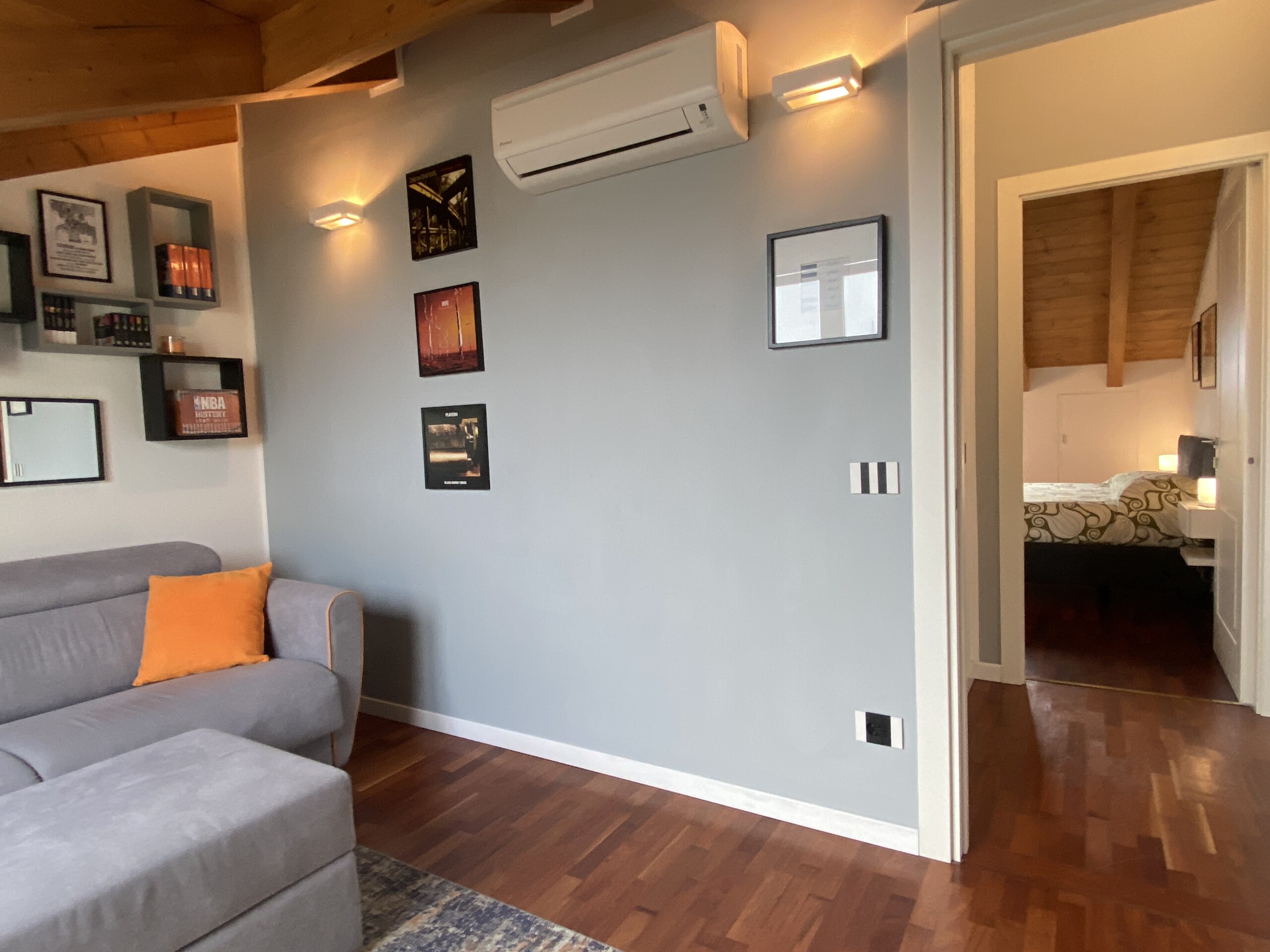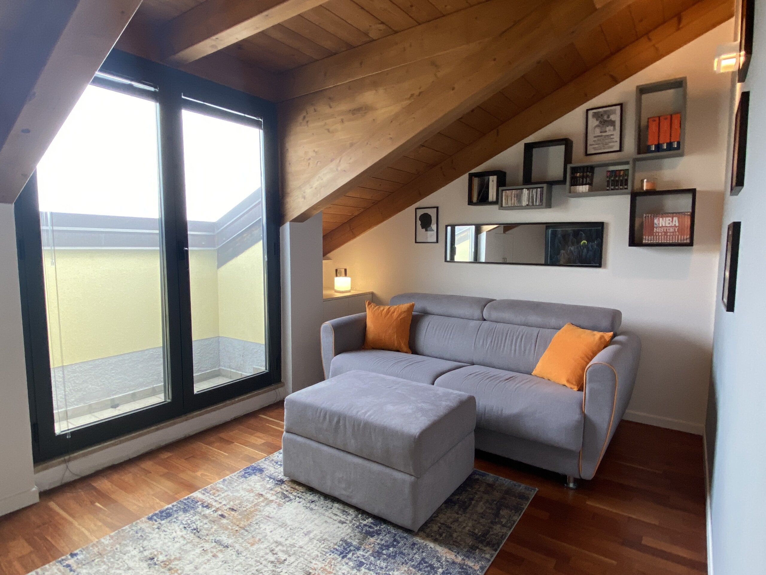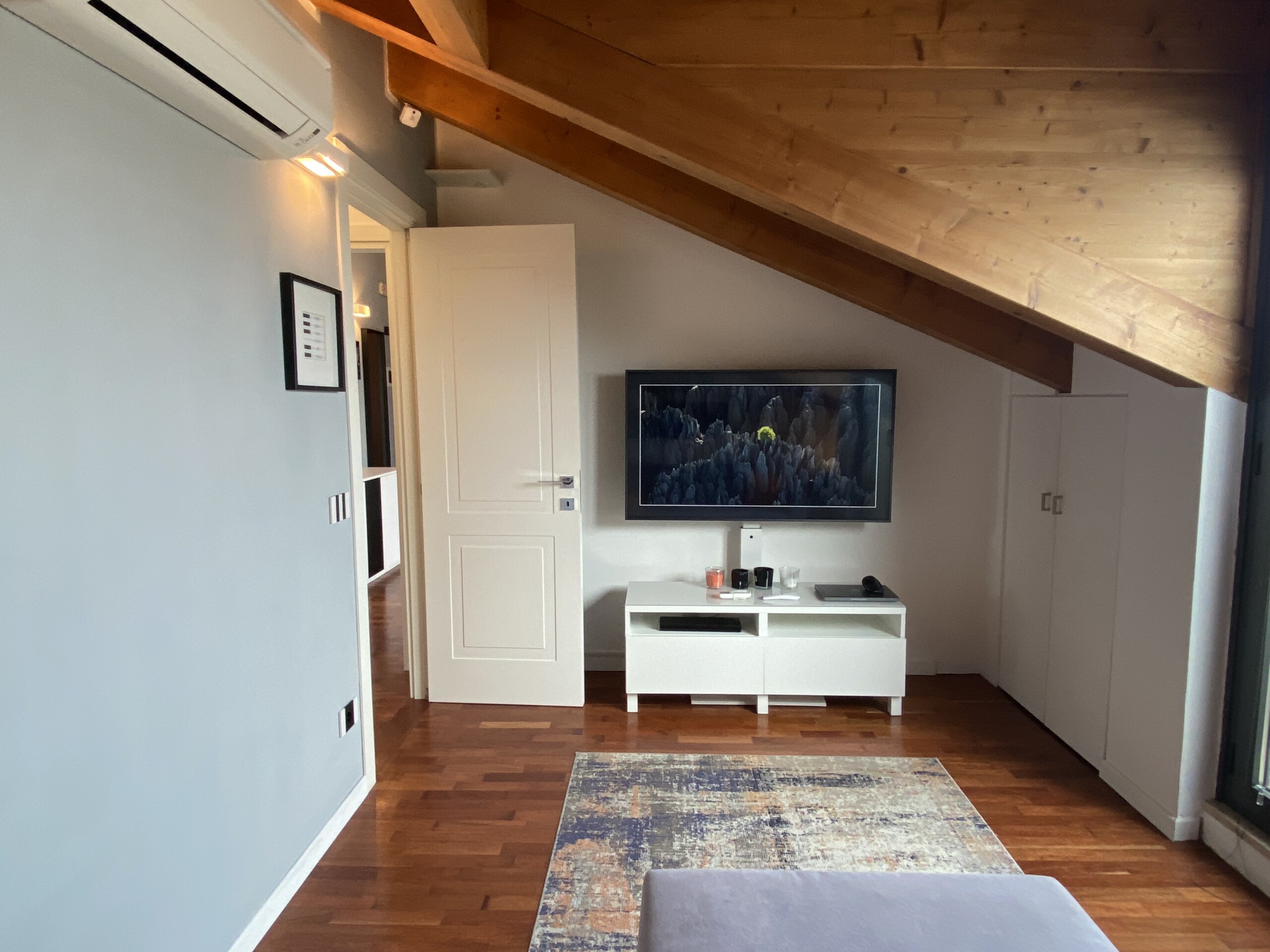 Throughout the apartment, you’ll find beautiful wooden flooring and exposed wooden beams, adding a unique and cozy touch. The windows are fitted with mosquito screens for extra comfort.
