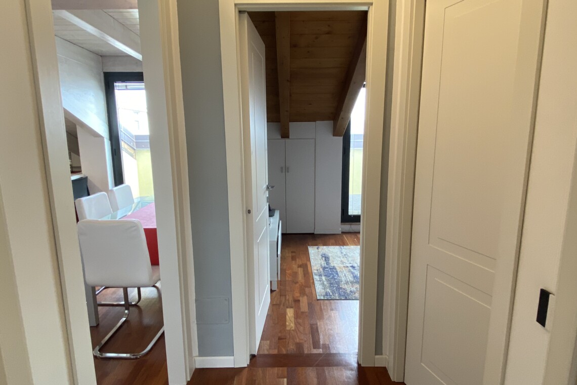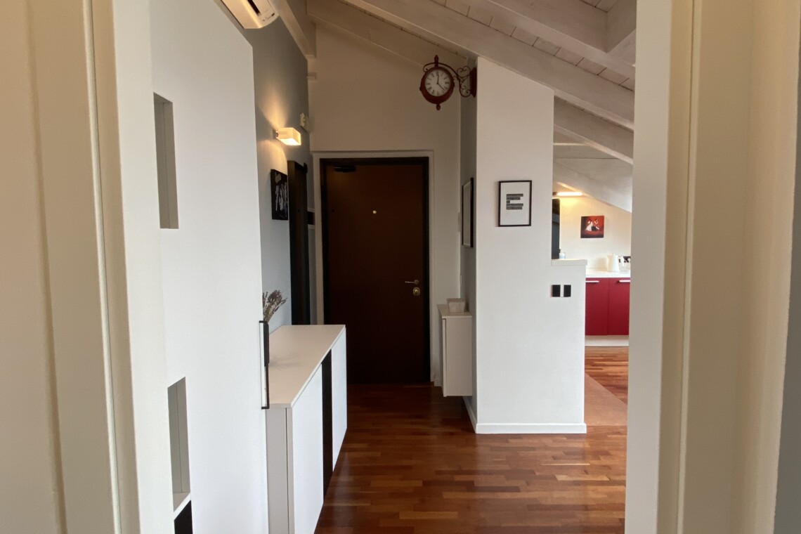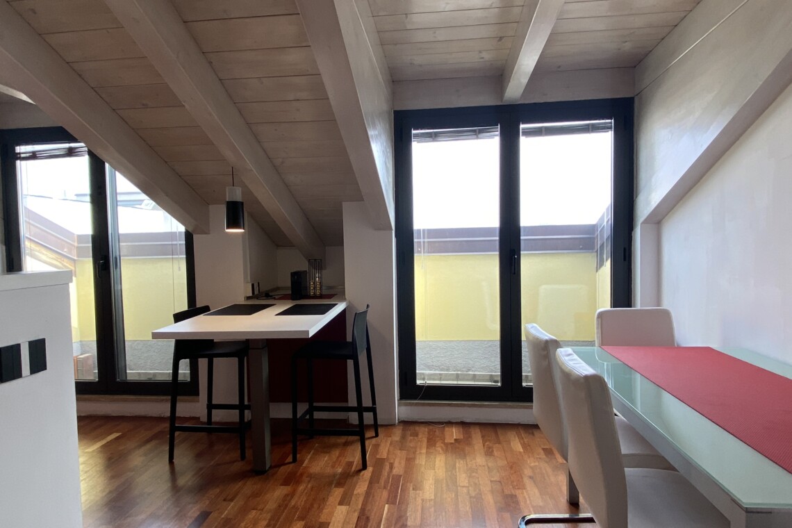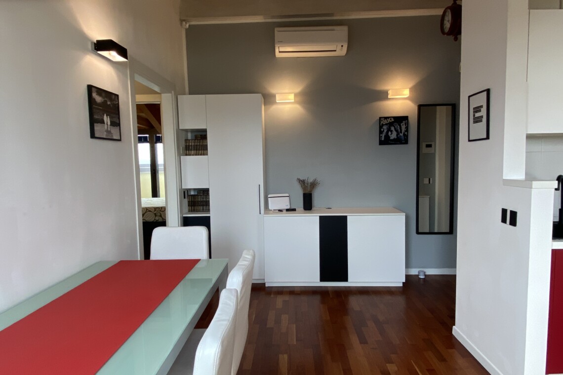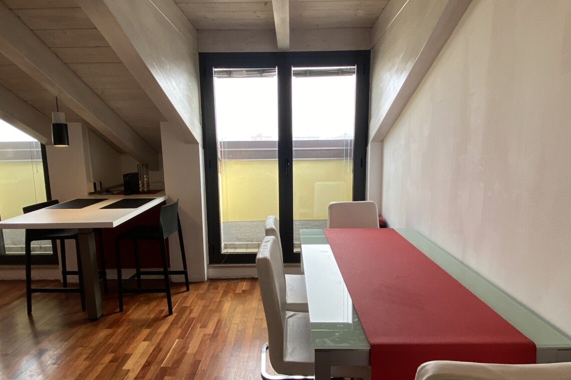 The apartment is situated in a fast-growing and evolving area, home to major fashion, insurance, and finance companies, as well as warehouses. Right across the street, the new Moncler headquarters is being completed, featuring offices and showrooms.