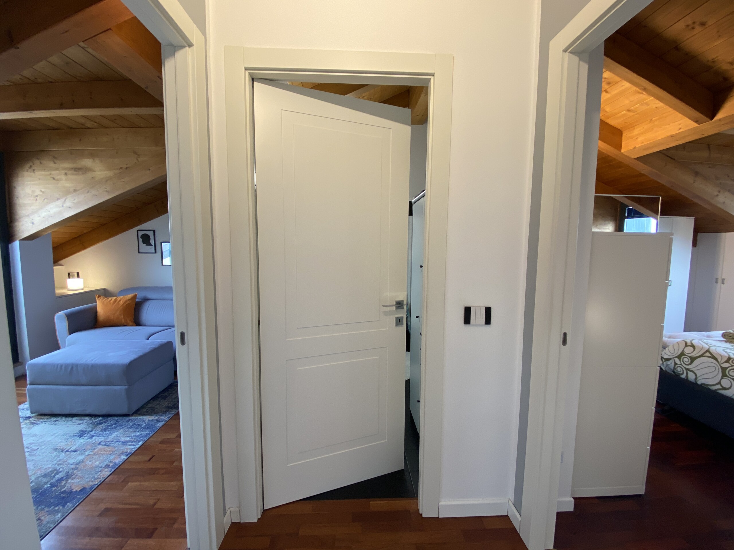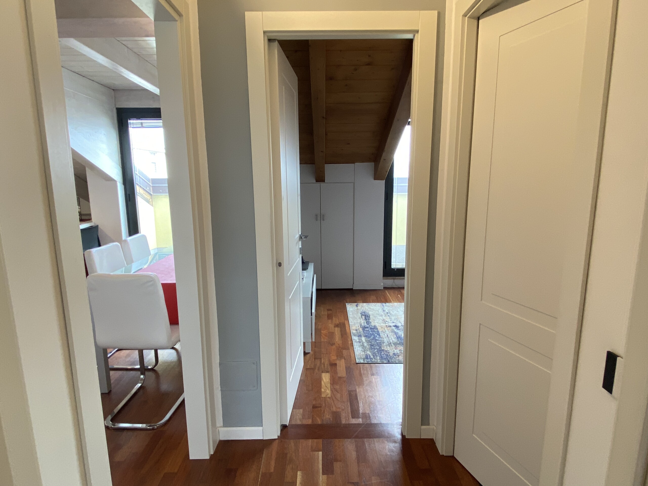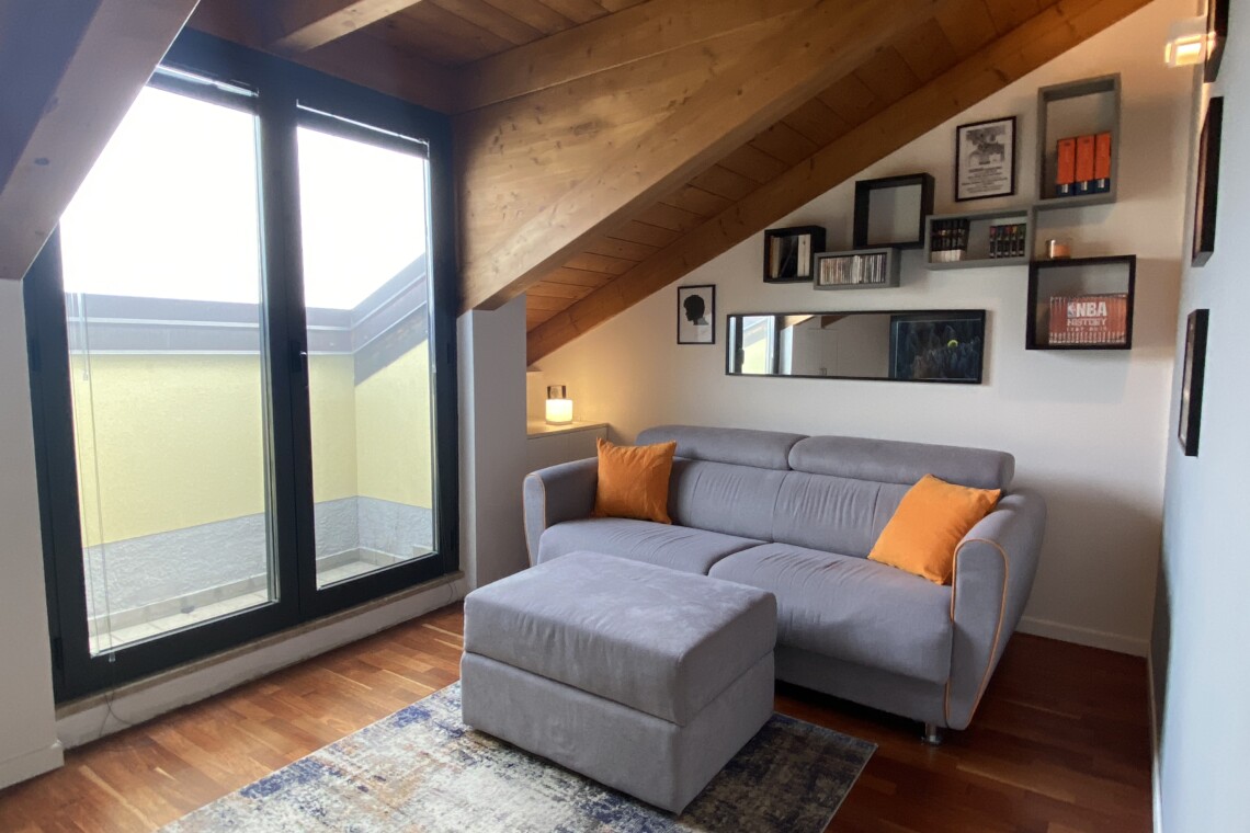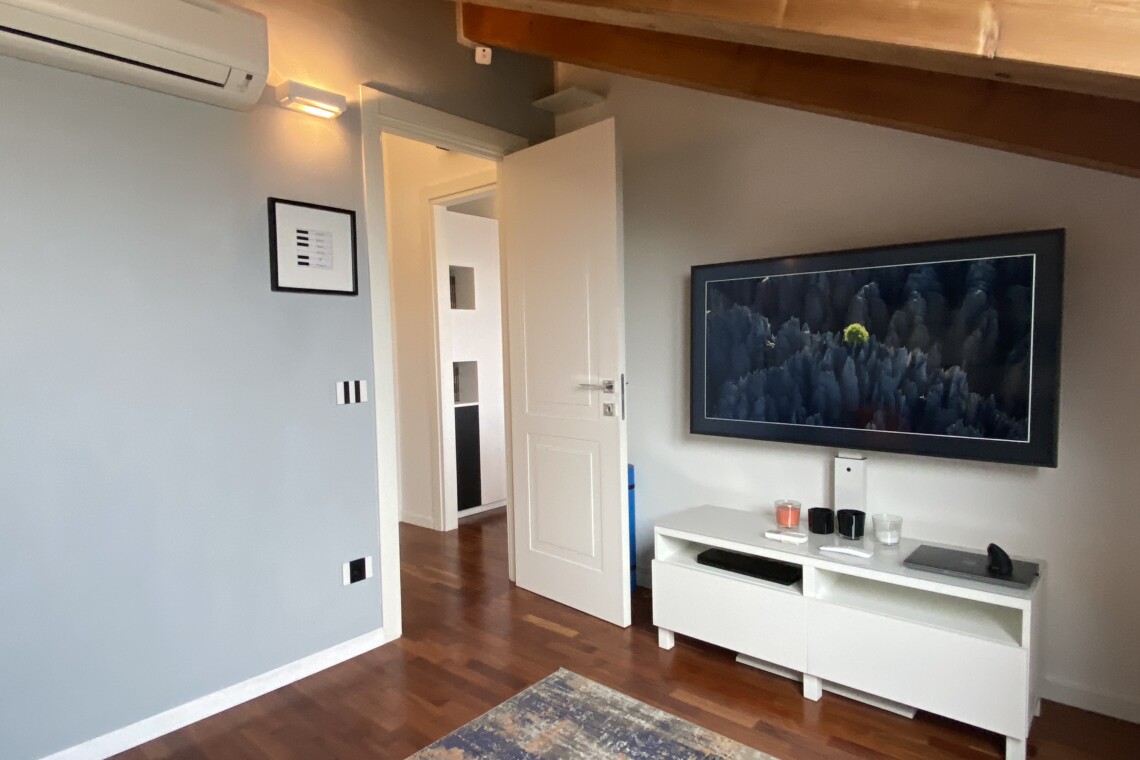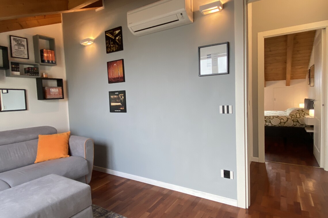 The apartment is situated in a fast-growing and evolving area, home to major fashion, insurance, and finance companies, as well as warehouses. Right across the street, the new Moncler headquarters is being completed, featuring offices and showrooms.